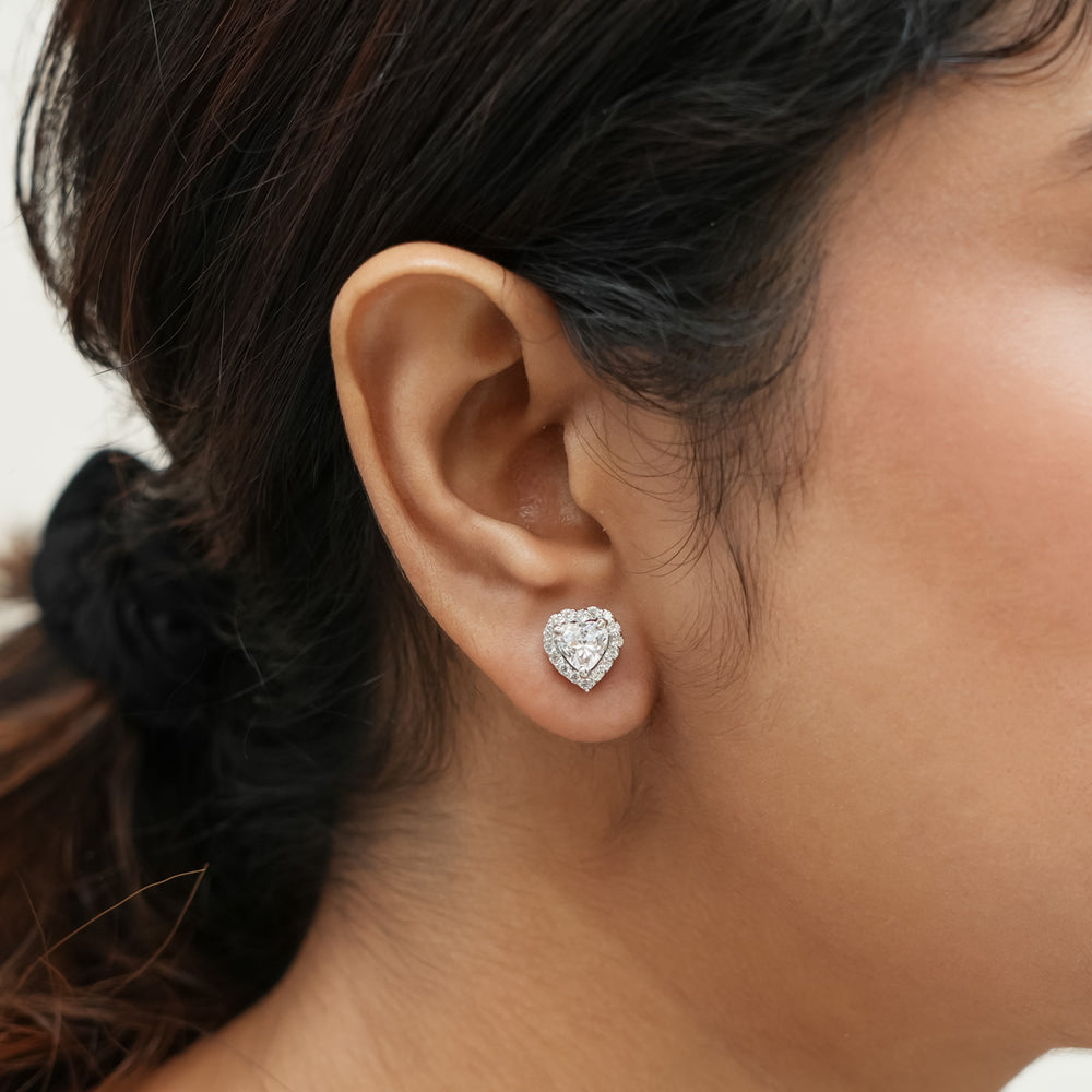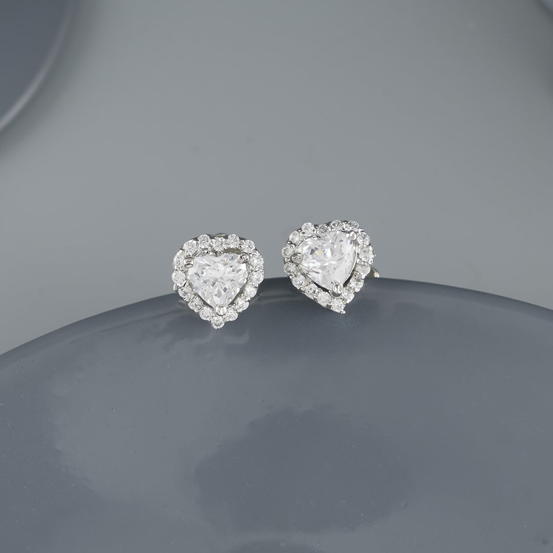 92.5 Silver Studs adorned with AAA high-quality Zirconia, the gorgeous design of a heart with a zircon studded for a style to be worn