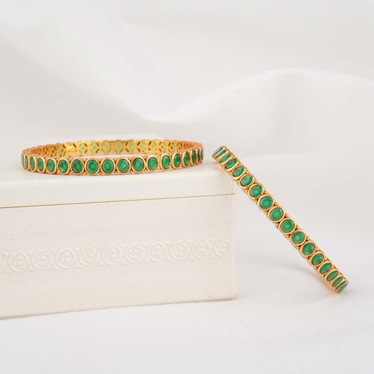 This 92.5 Silver, 24 kt gold-plated stylish Bangles is studded with semi-precious stones to make a stunning statement. Perfect for both formal and casual occasions.