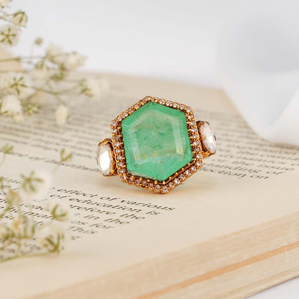 92.5 Silver, Victorian Ring studded with Gem Stones.