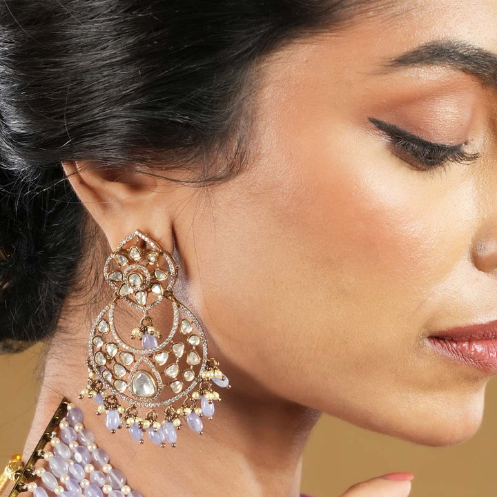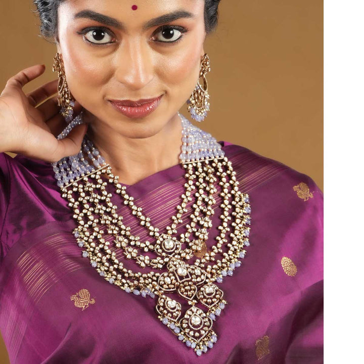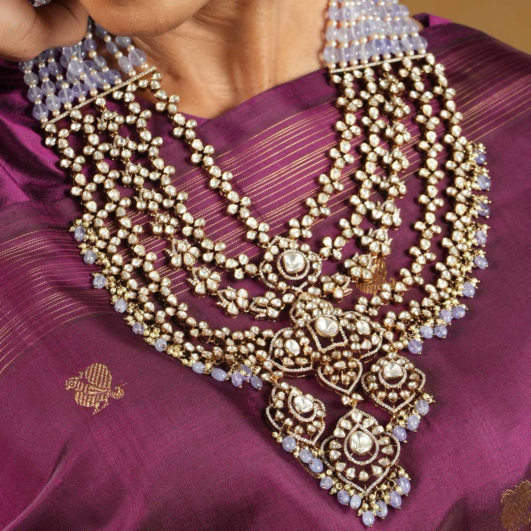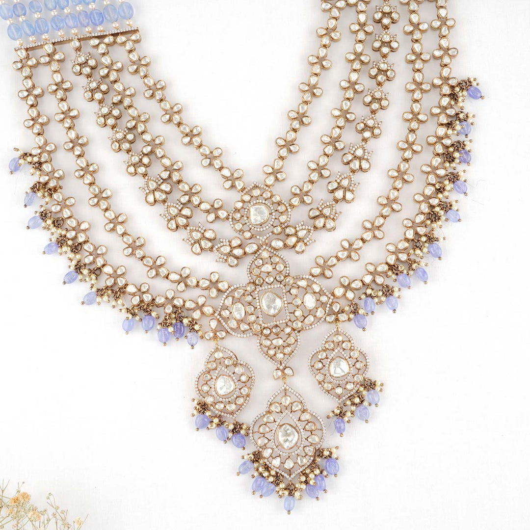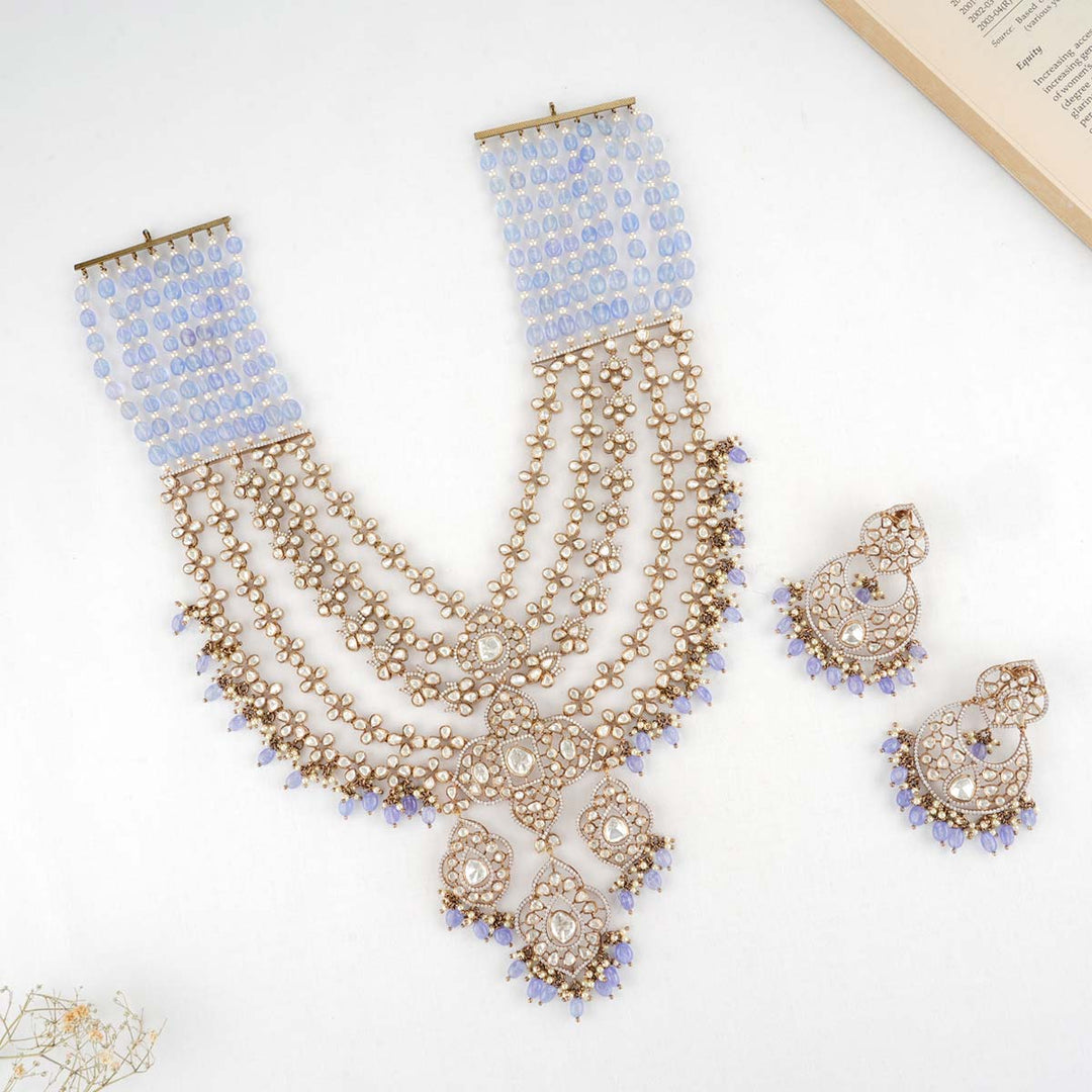 92.5 Silver, Victorian Necklace set studded with Gem Stones and Pearl Beads.