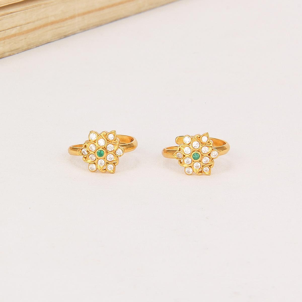 92.5 Silver, Gold Plated Stone Toe Rings.