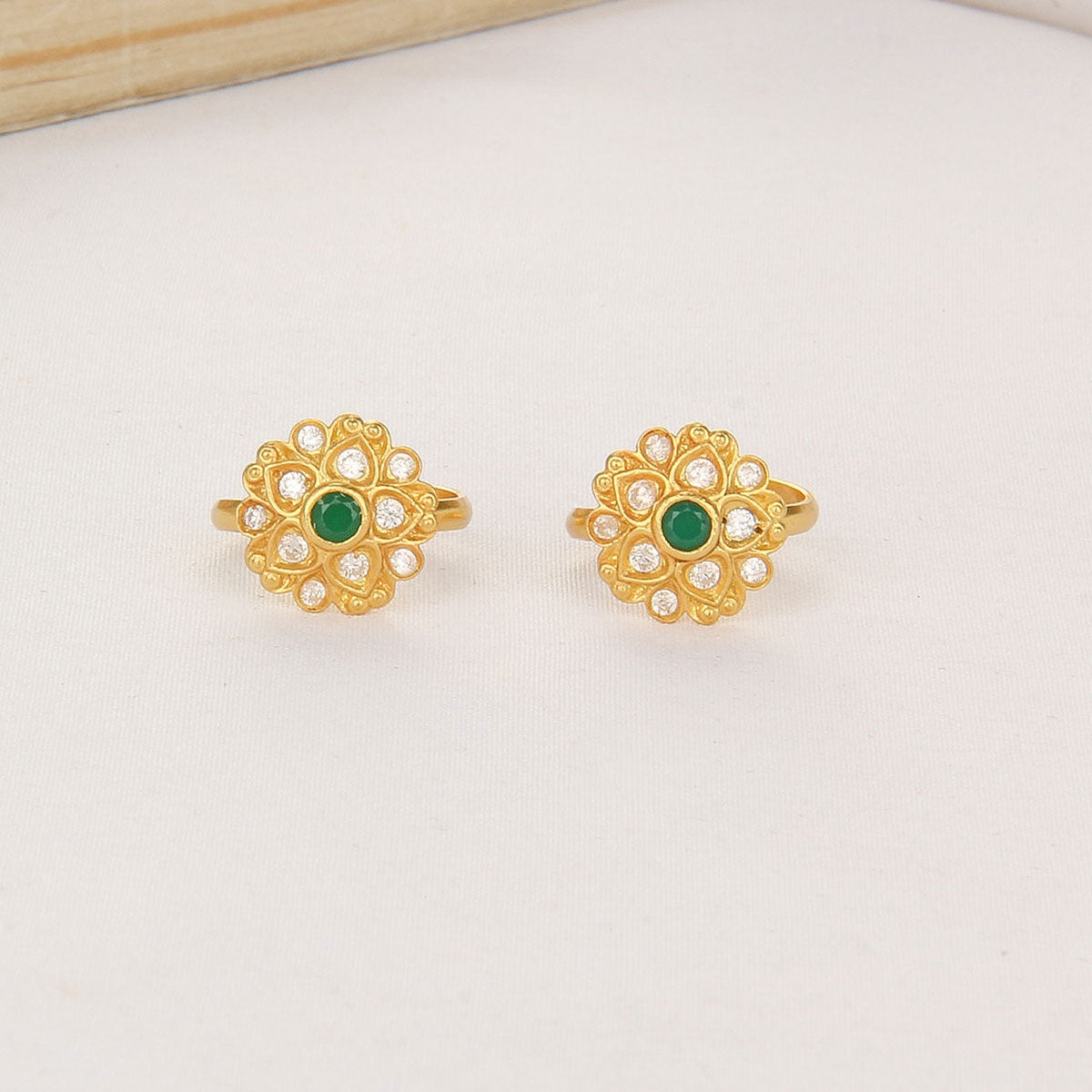 92.5 Silver, Gold Plated Stone Toe Rings.
