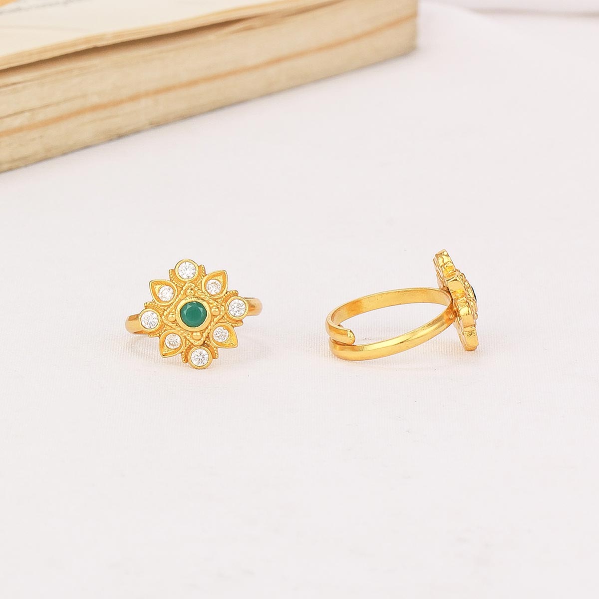 92.5 Silver, Gold Plated Stone Toe Rings.