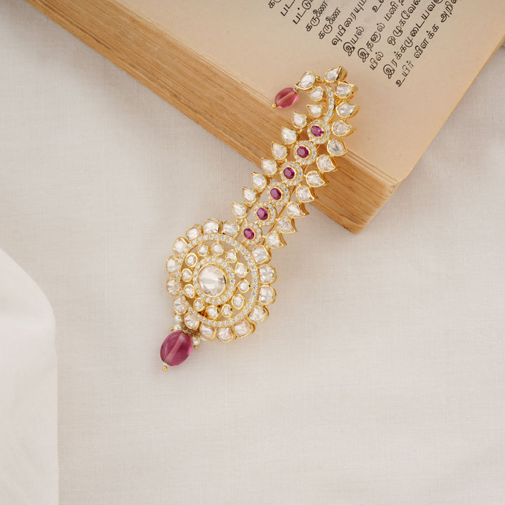 This 92.5 Silver and 24Kt gold Plated Turban Kalgi for men is embellished with Moissanite Stones for an elegant look.