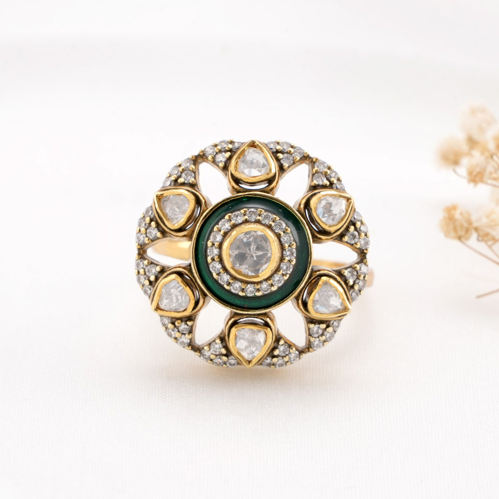 92.5 Silver, Victorian Ring studded with Gem Stones.