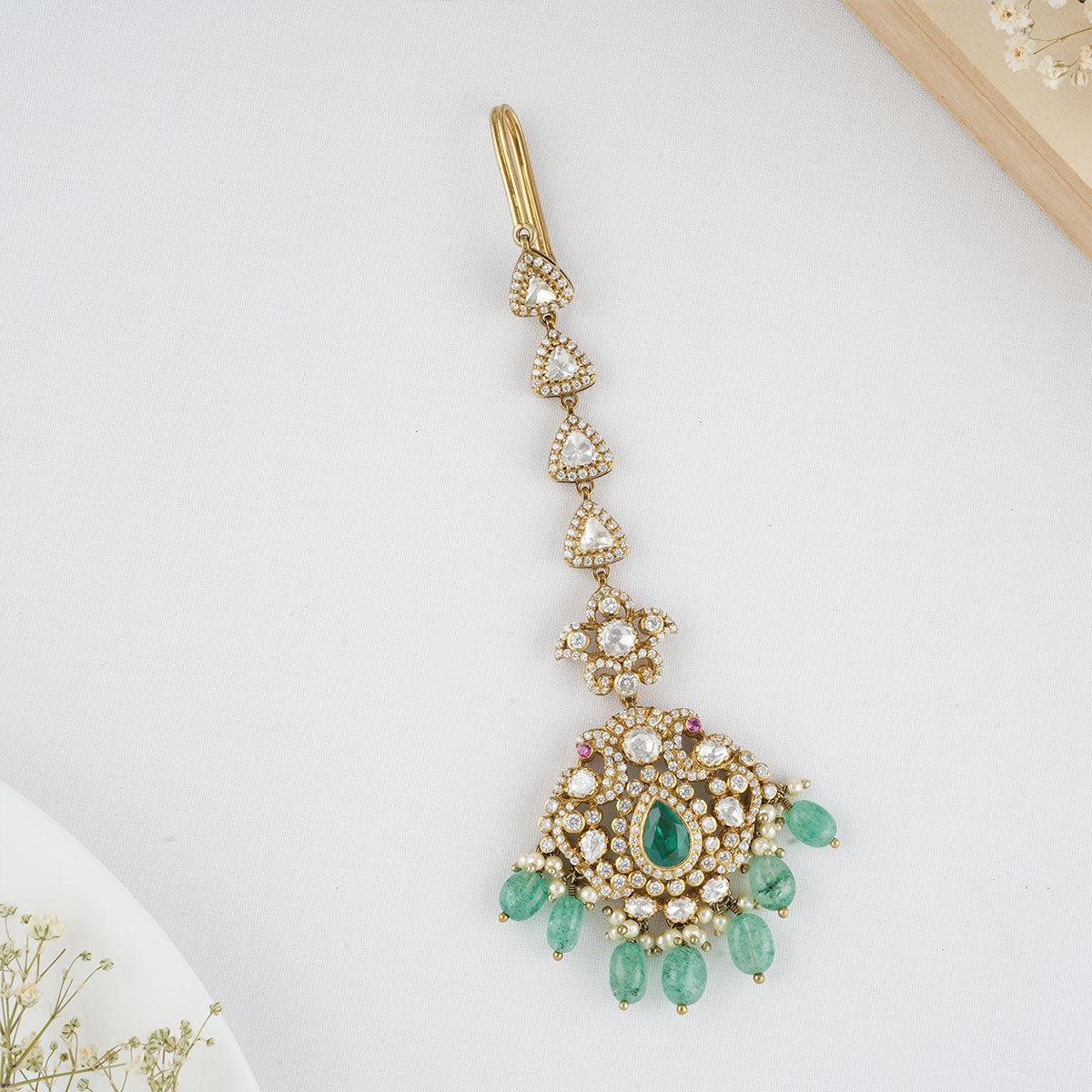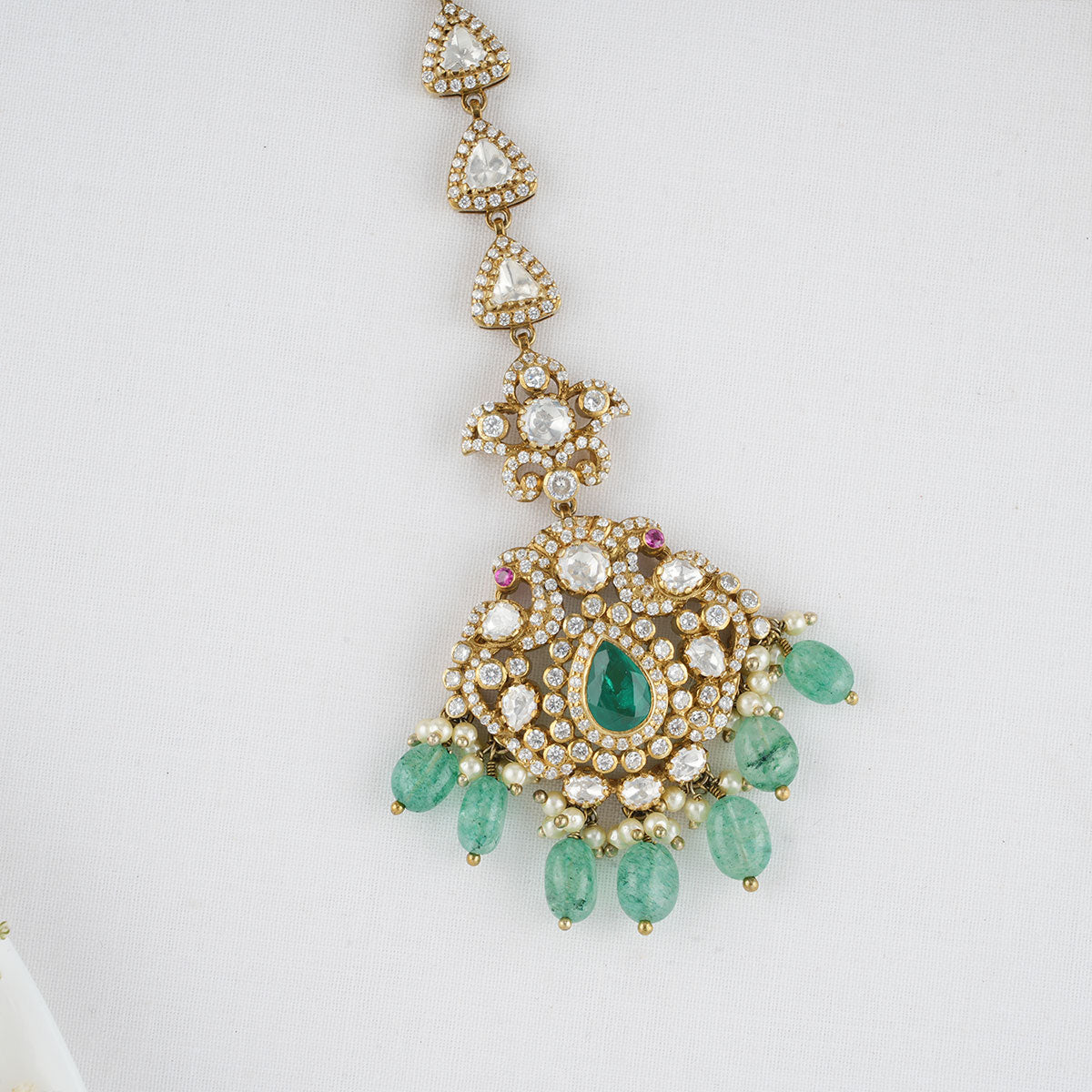 92.5 Silver, Victorian Maangtikka studded with Gem Stones.