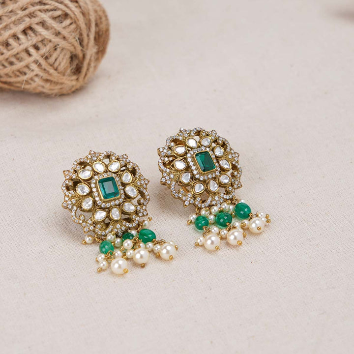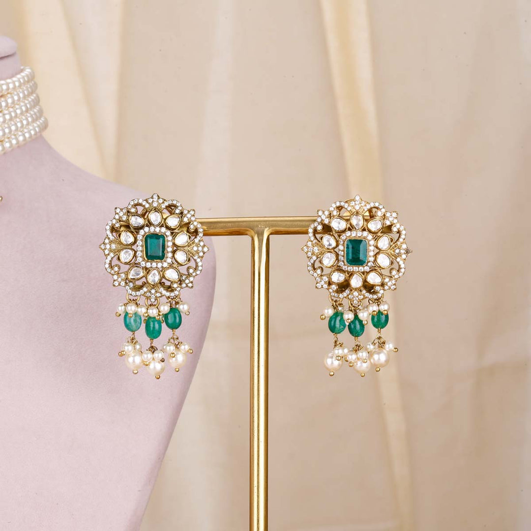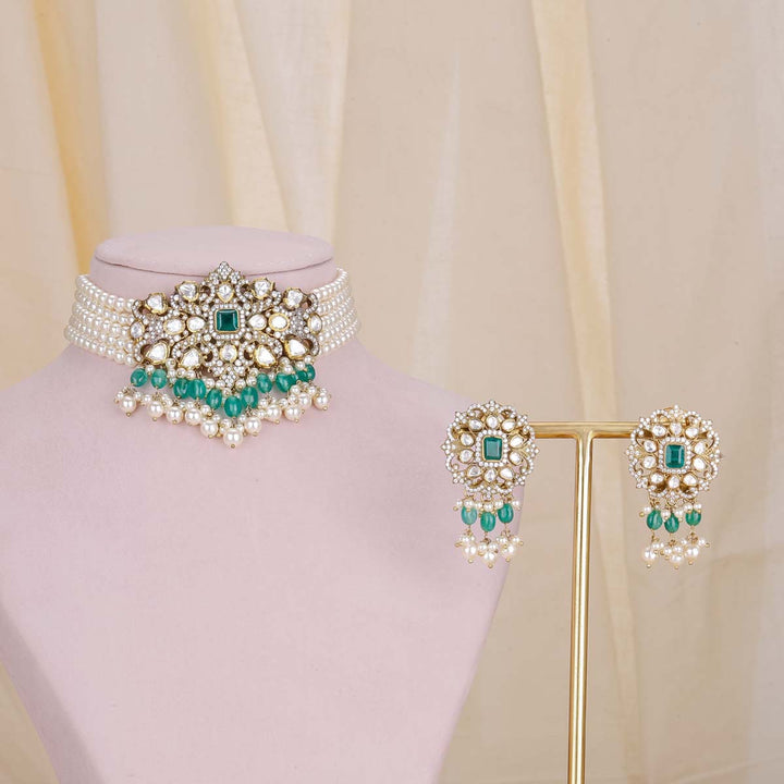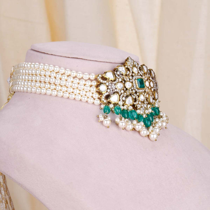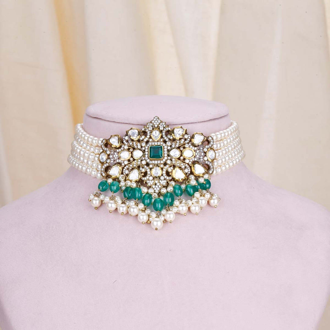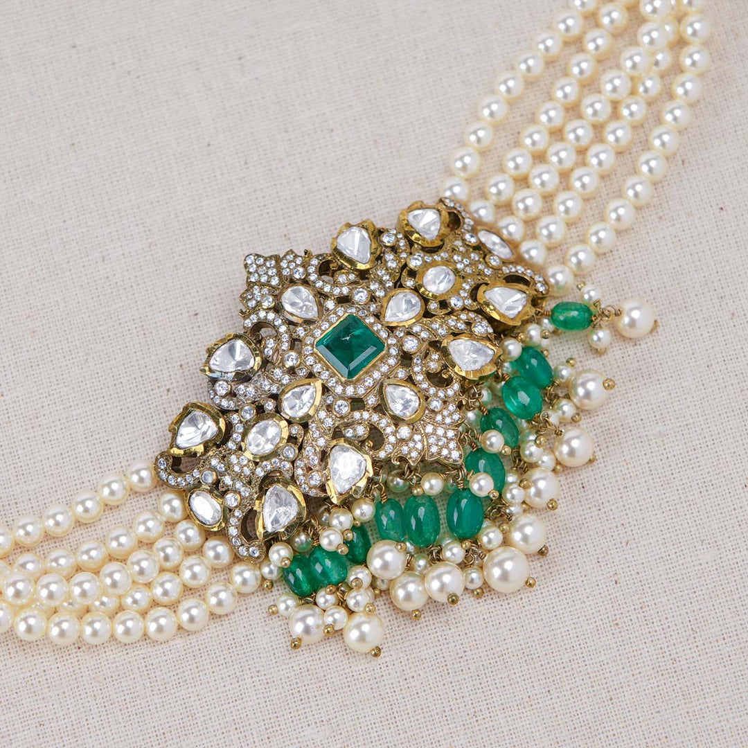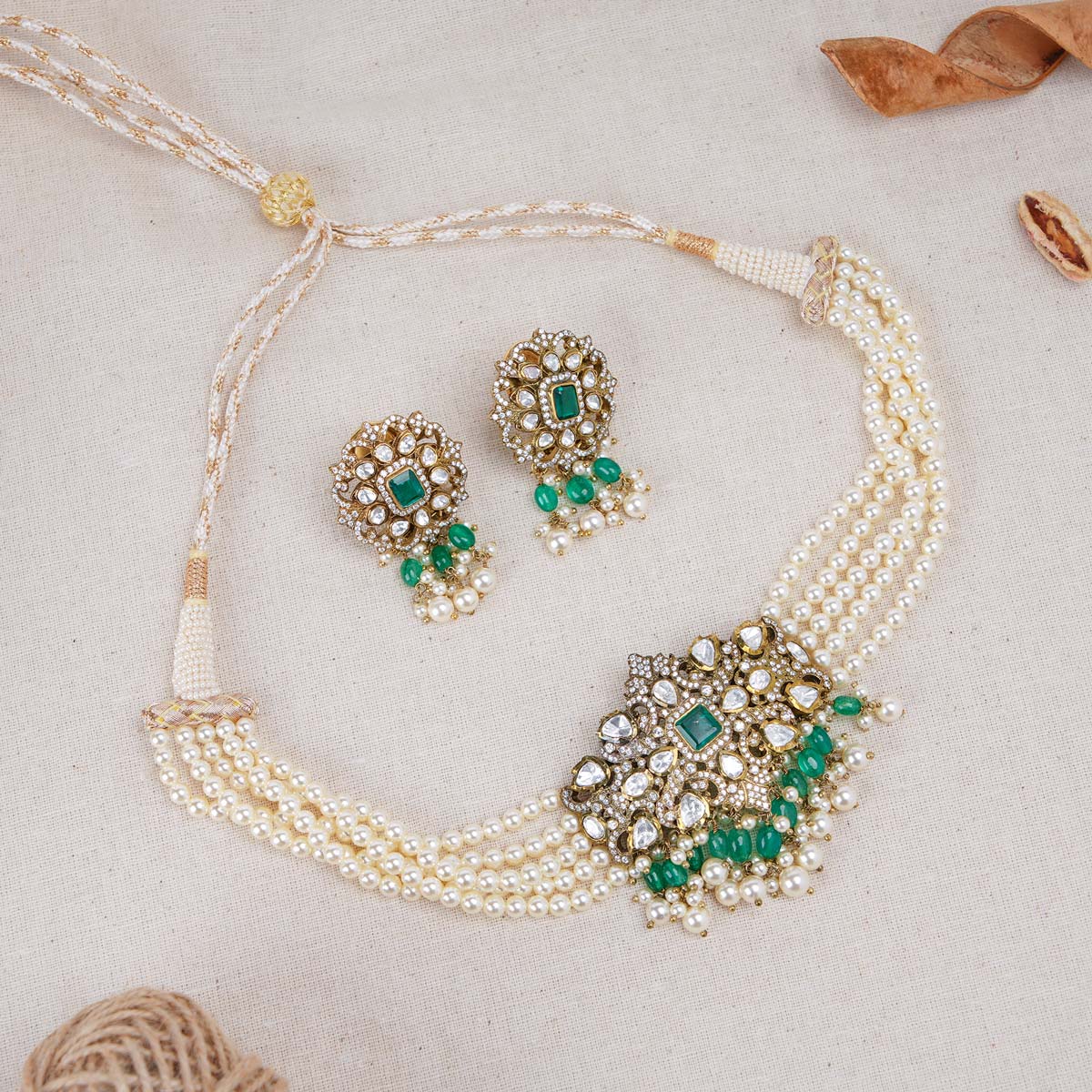 92.5 Silver, Victorian Necklace set studded with Gem Stones and Pearl Beads.