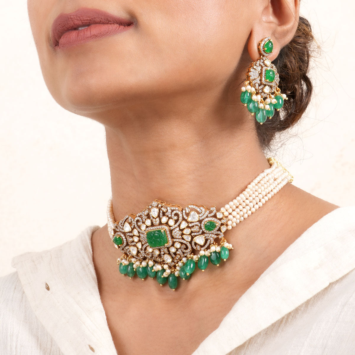 92.5 Silver, Victorian Choker studded with Gem Stones and Pearl Beads.