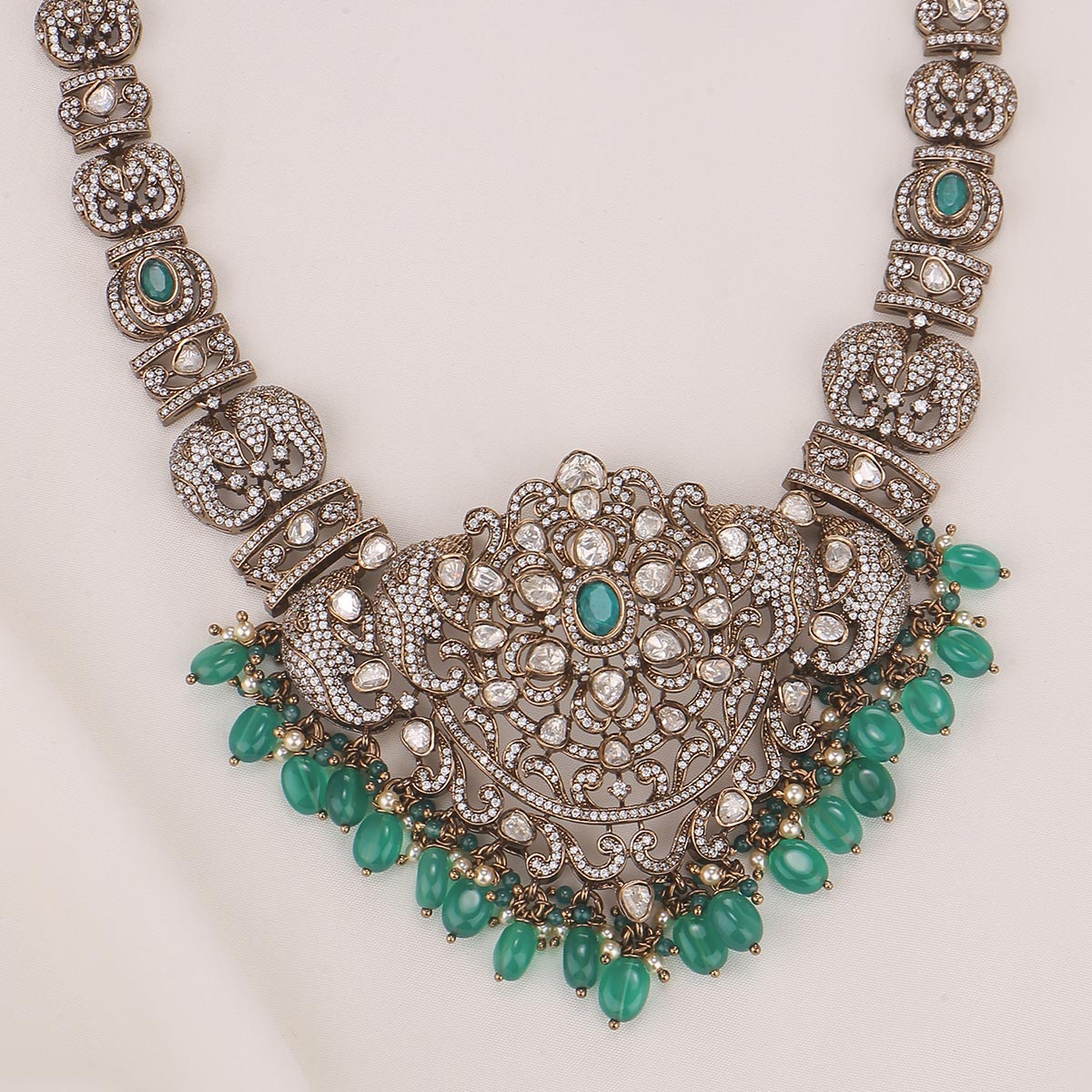 92.5 Silver, Victorian Necklace studded with Gem Stones.