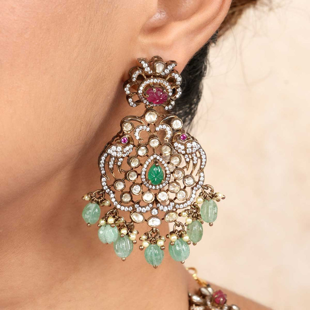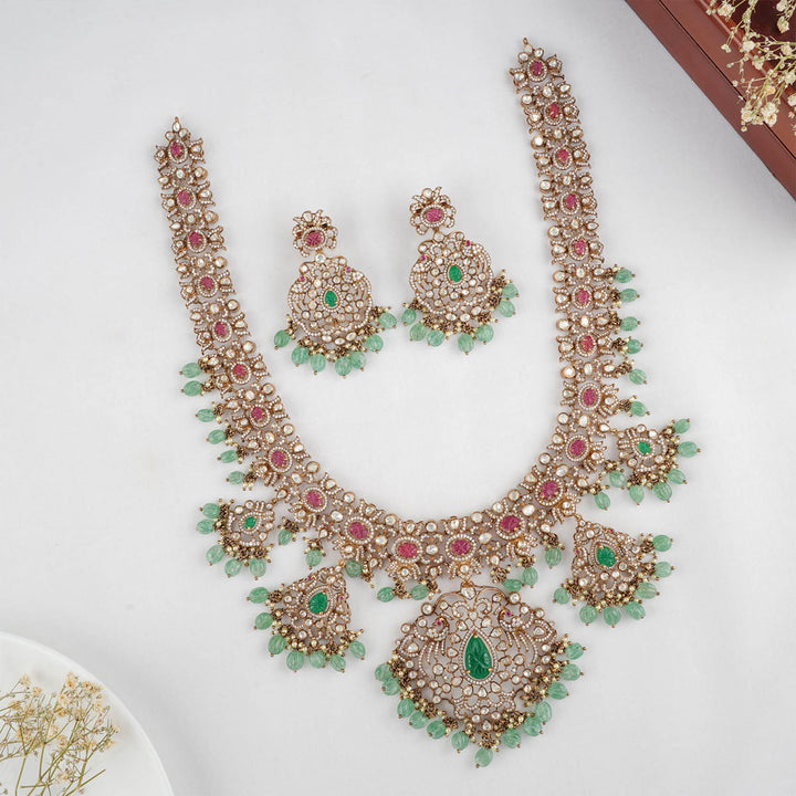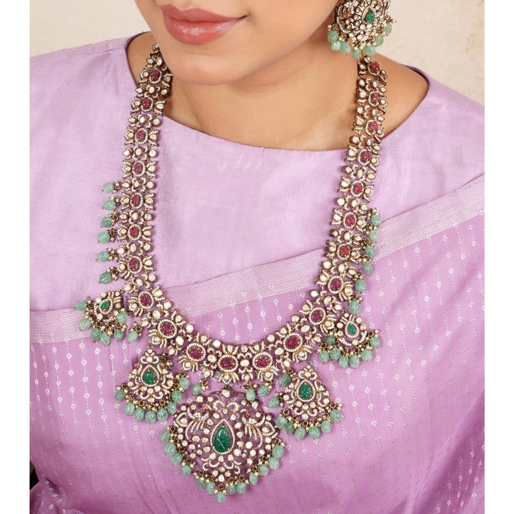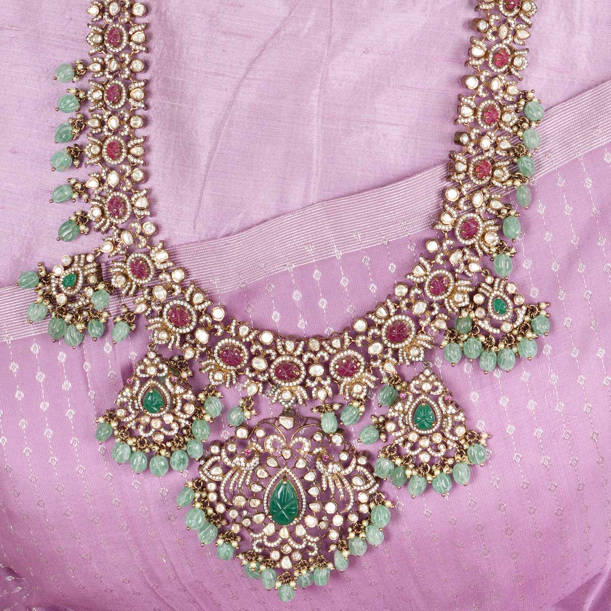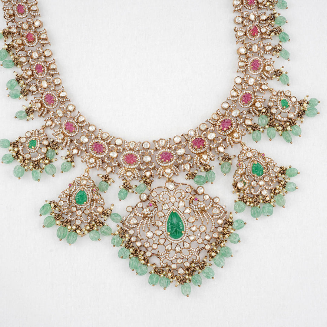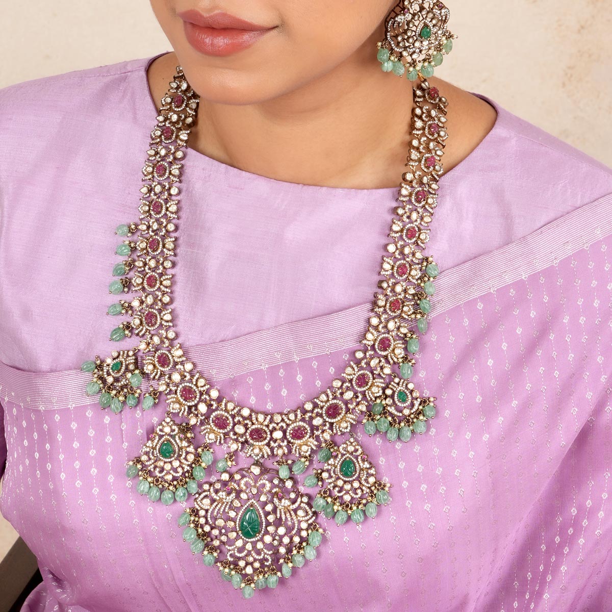 92.5 Silver, Victorian Necklace set studded with Gem Stones and Pearl Beads.