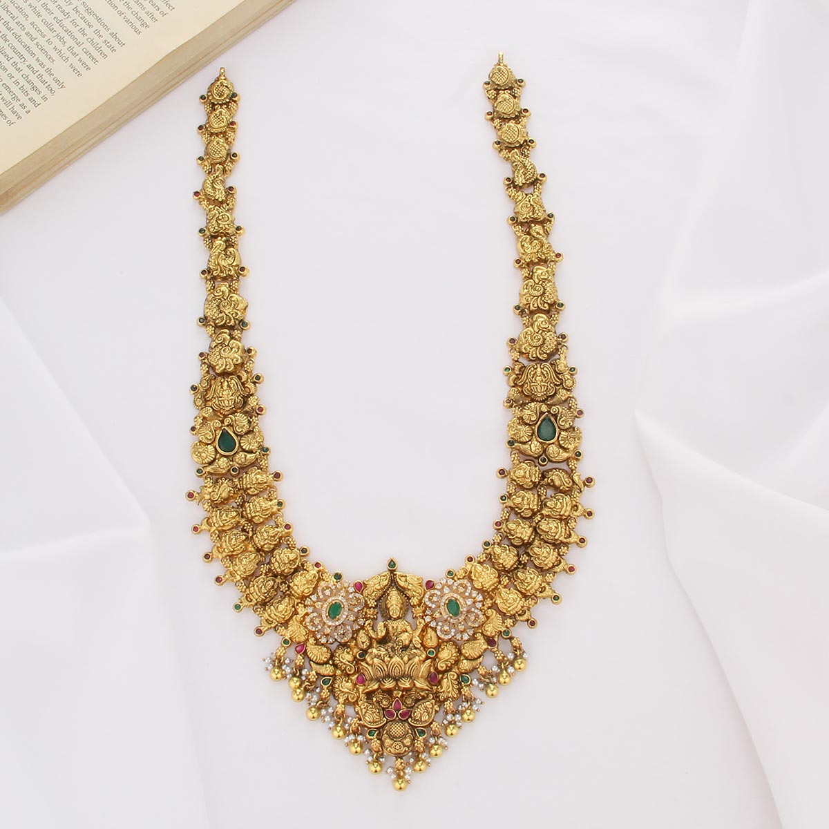 This necklace is made from 92.5 Sterling Silver, accented with semiprecious stones and adorned with a 24-karat gold plating, all on Nagas Jewellery.