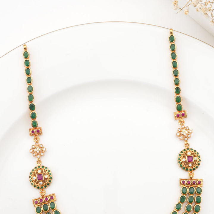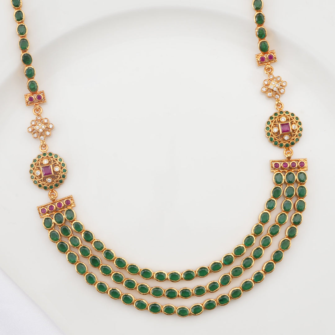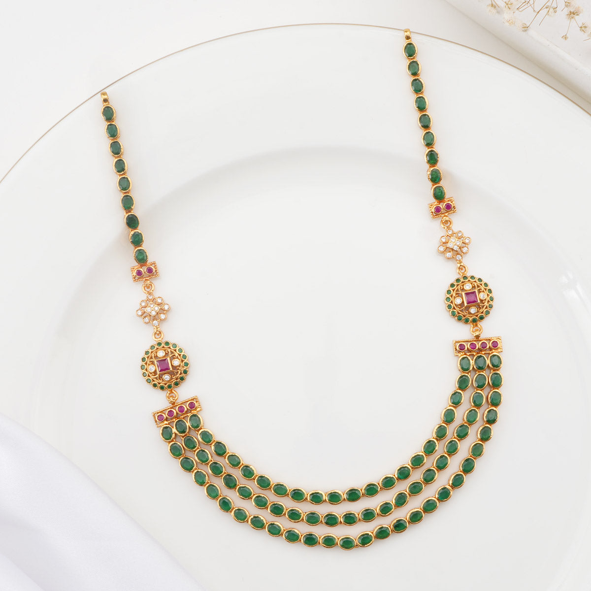 This elegant Short Necklace features 92.5% pure silver and 24 karat gold plating, adorned with high-quality semi-precious stones. It is the ideal accessory for any formal event.