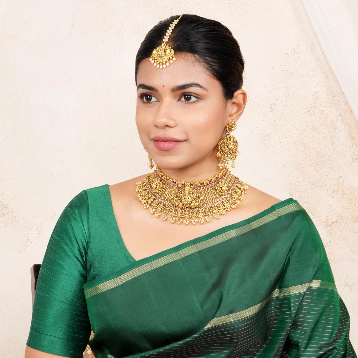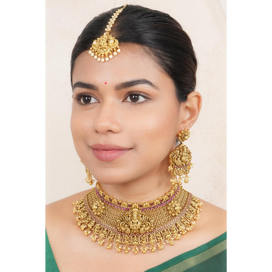 Note: The price mentioned is only for the Choker Necklace. To know the price of the Earrings, Maangtikka please contact Customer Care.