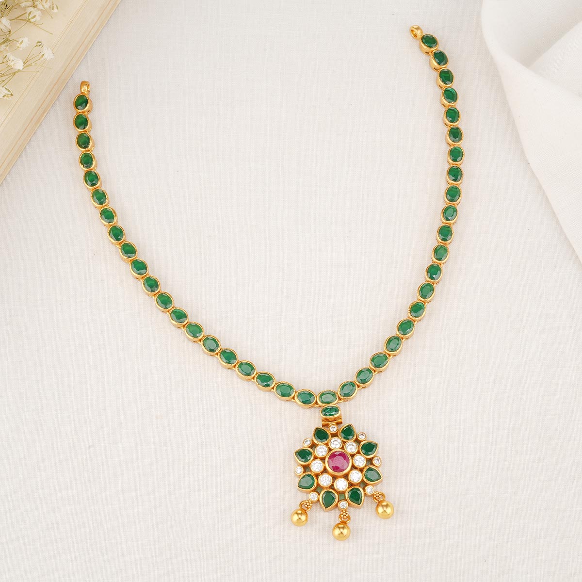 This set of Majestic Look necklaces is crafted from 92.5 Silver, 24kt Gold Plated, and is studded with semi-precious stones for a truly dazzling effect. Unparalleled in design and style, this exquisite set makes a grand statement.
