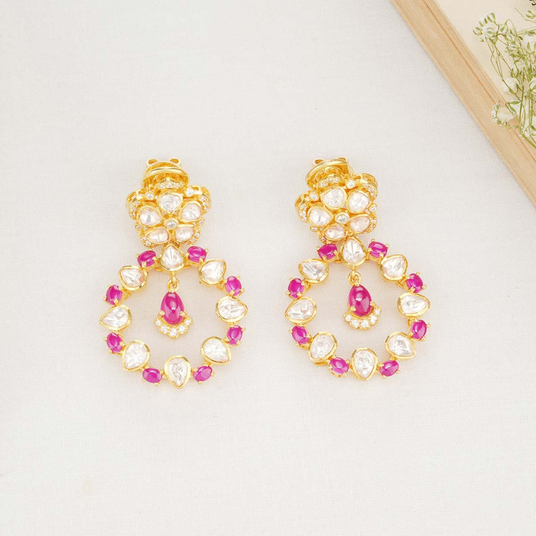 These earrings are crafted from 92.5 silver and 24kt gold-plated metals, with semi-precious stones embedded for added sparkle.