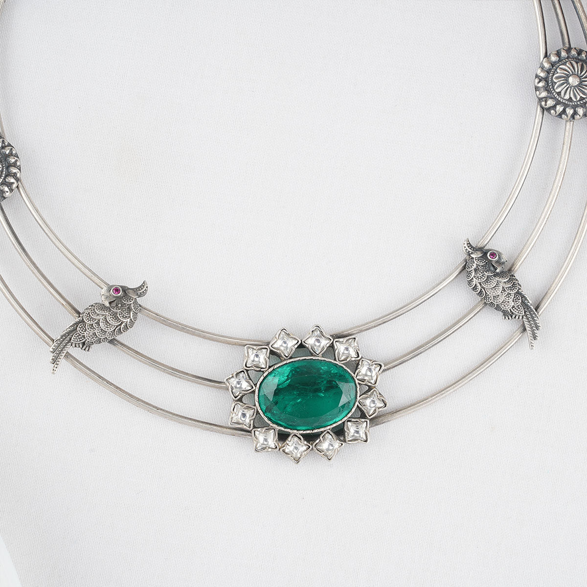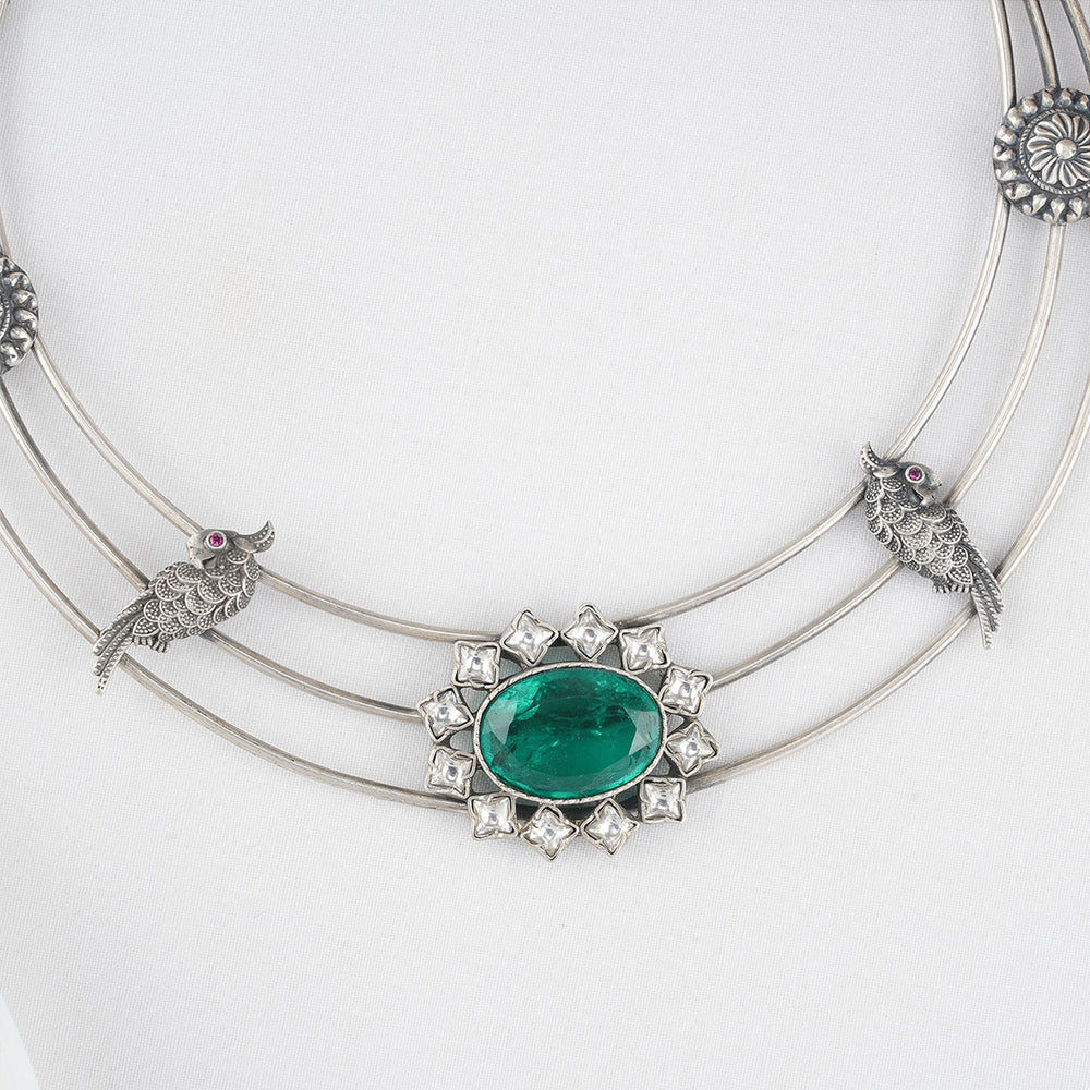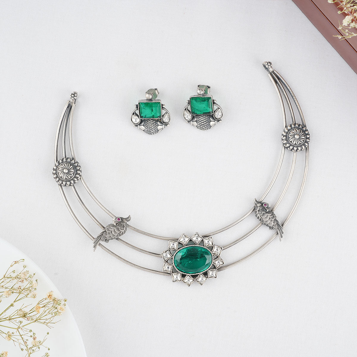 92.5 silver oxidized Necklace Set, Studded with Semi-Precious Stones.