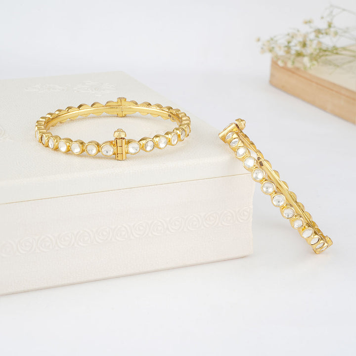 This 92.5 Silver, 24 kt Gold-Plated Bangles is adorned with Semi-precious Kundan Stones for a luxurious aesthetic.