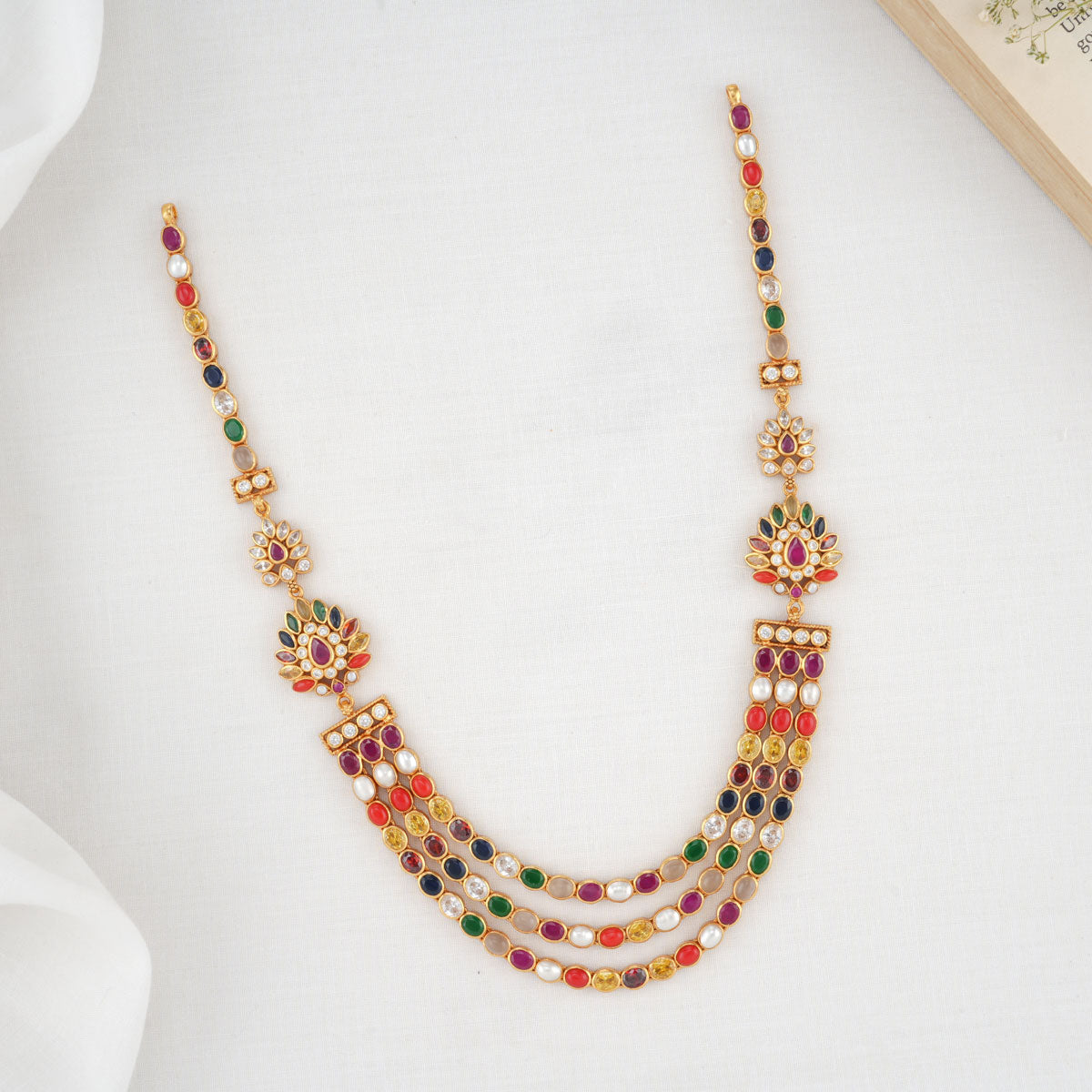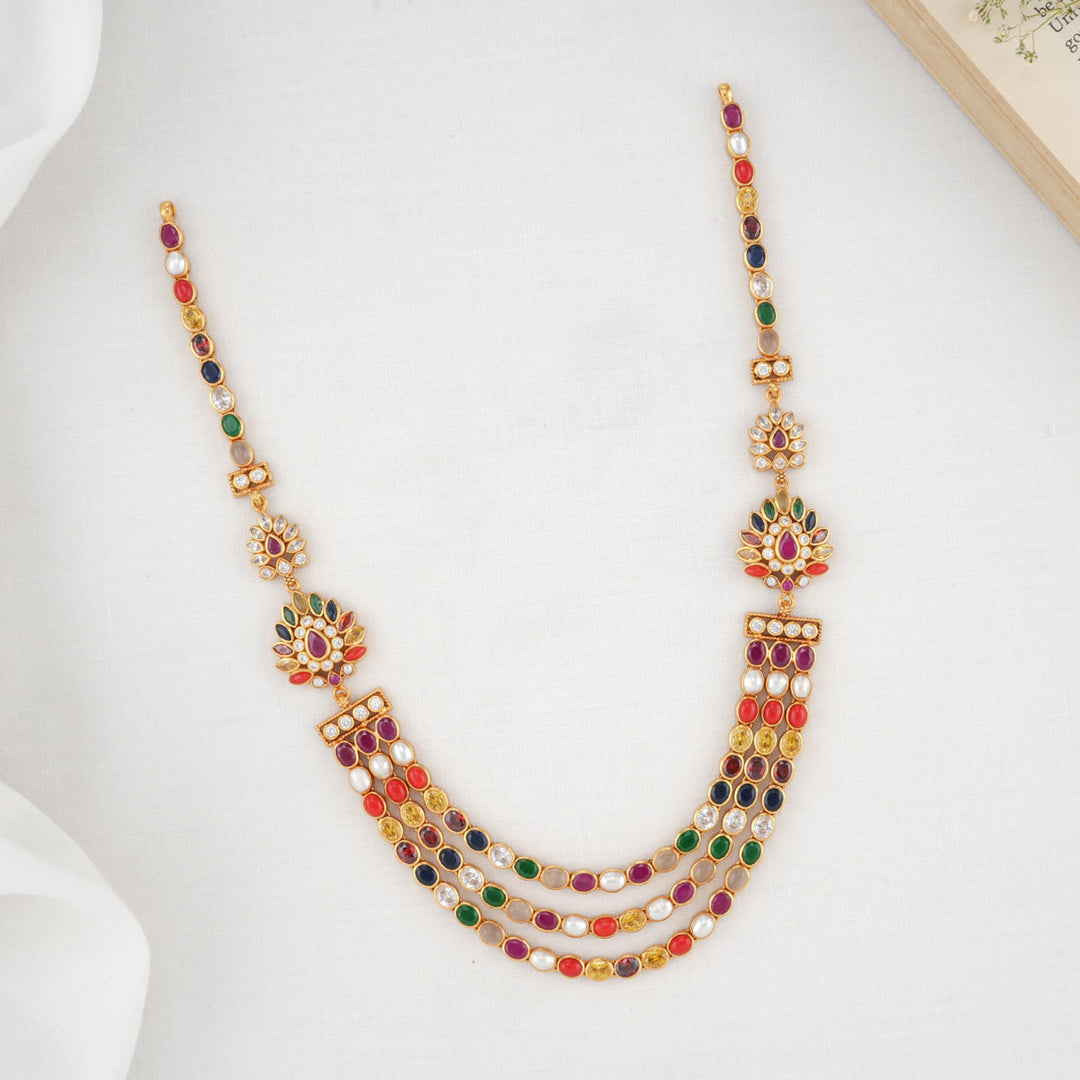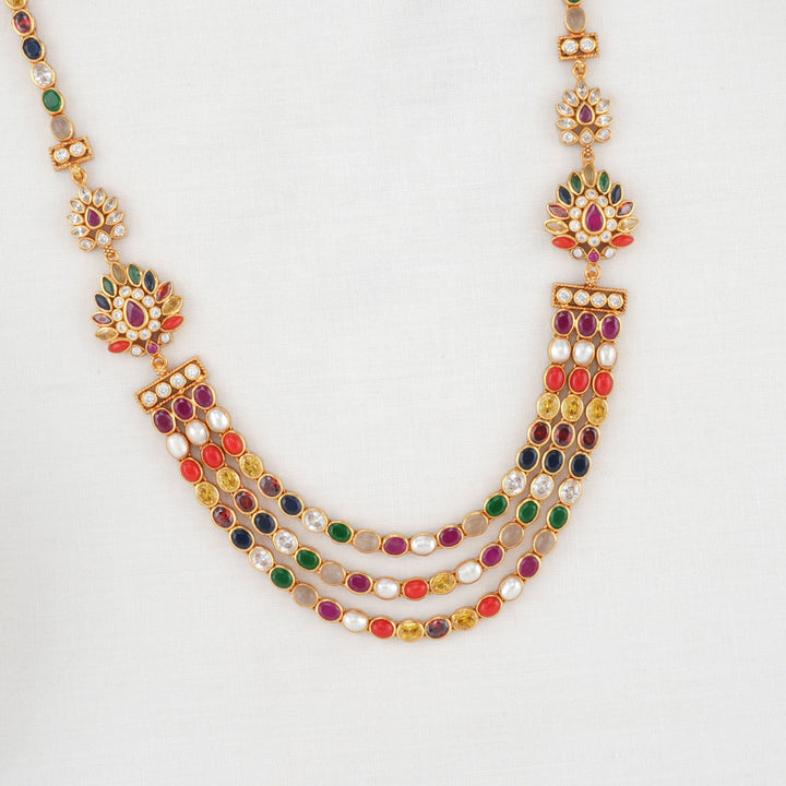 This 92.5 Silver, 24 kt gold-plated stylish Necklace is studded with semi-precious stones to make a stunning statement. Perfect for any special occasion.