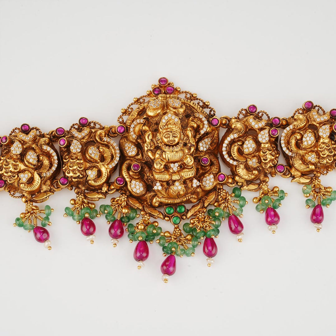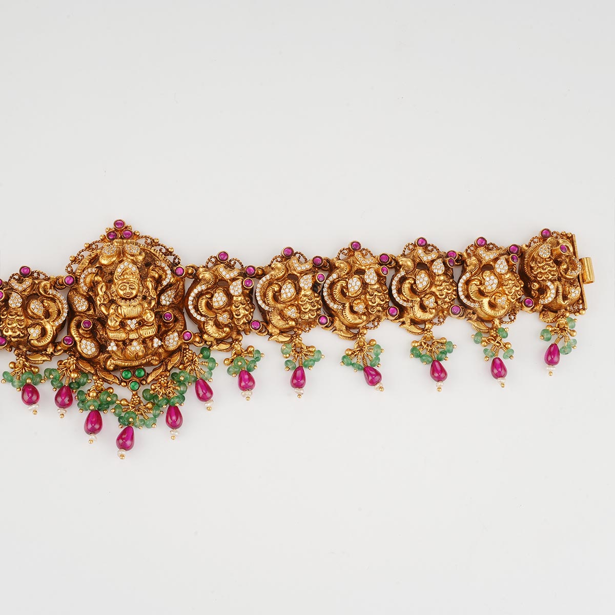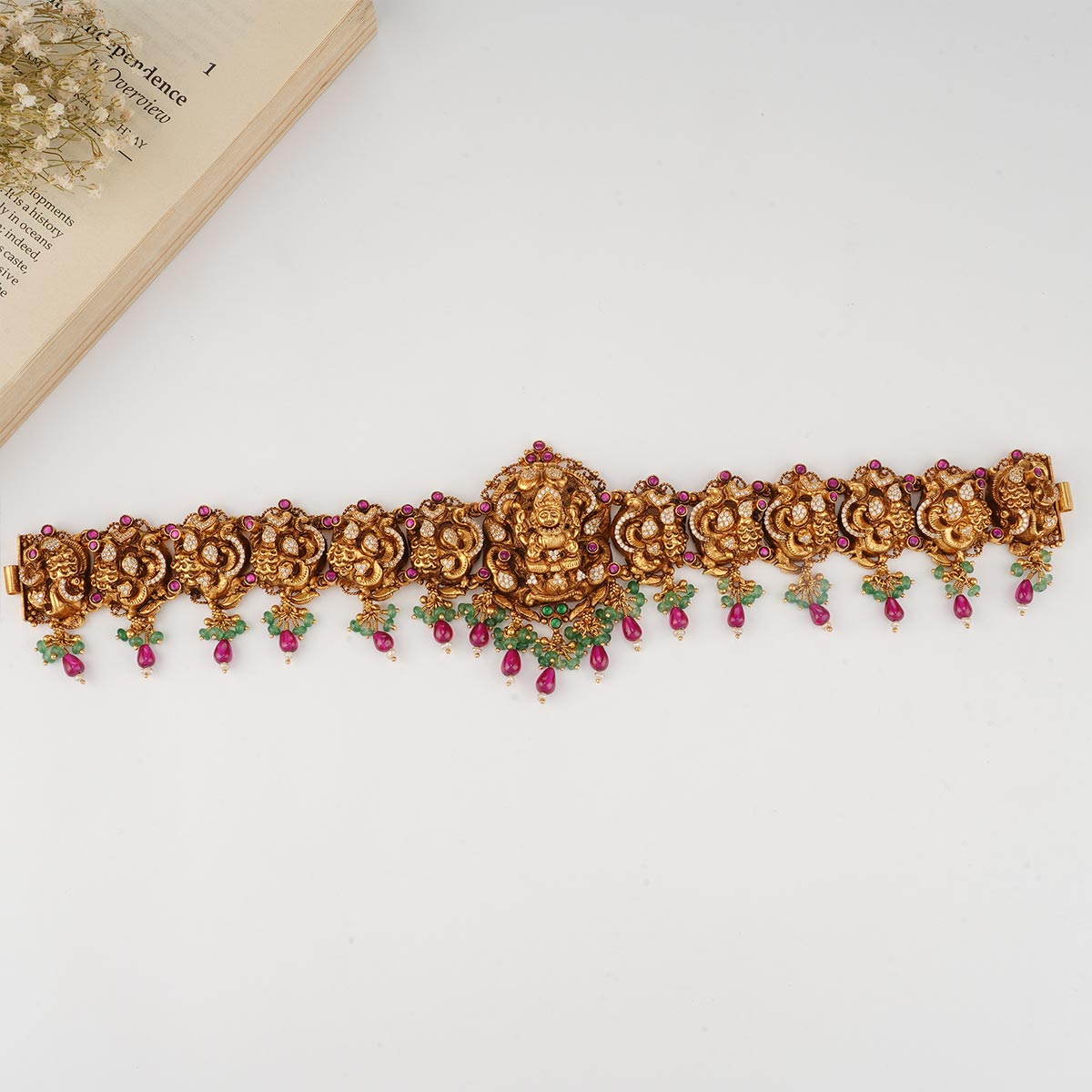 92.5 gold plated nagas oddiyanam/vadanam. this is studded with Semi-Precious stones that cast an auspicious blessing on the bride.