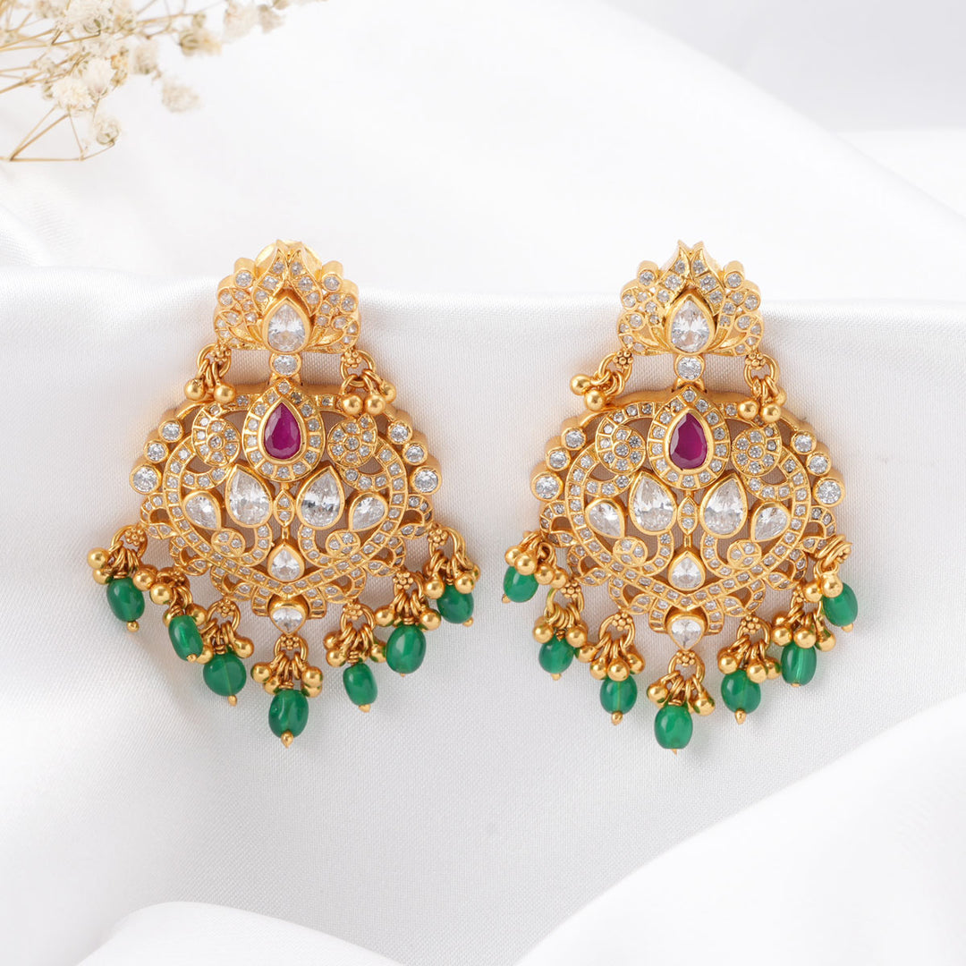 These earrings are crafted from 92.5 silver and 24kt gold-plated metals, with semi-precious stones embedded for added sparkle.