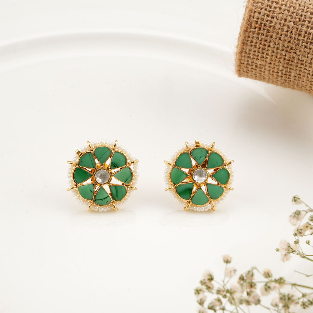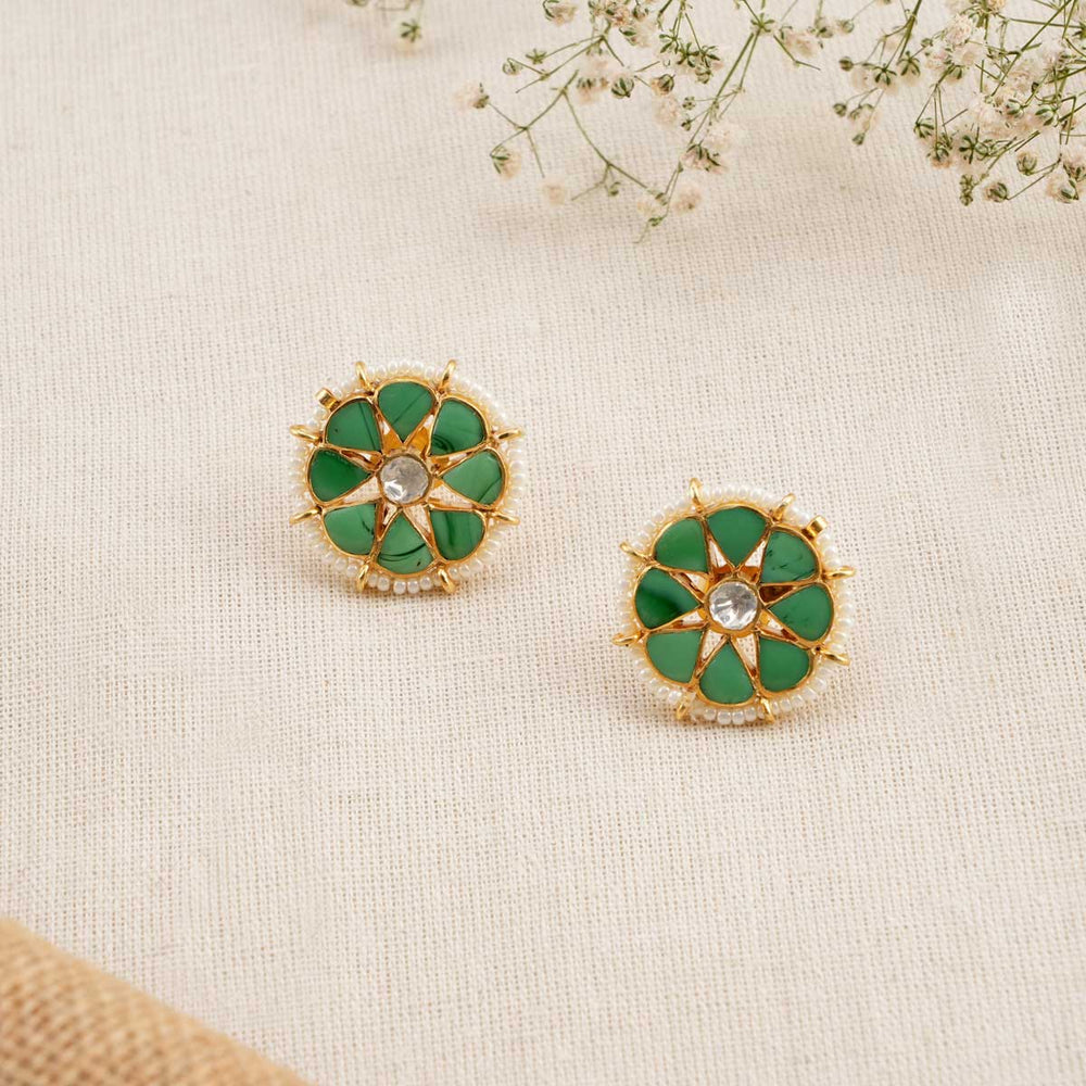 92.5 Silver Gold Plated Earrings studded with Kundan