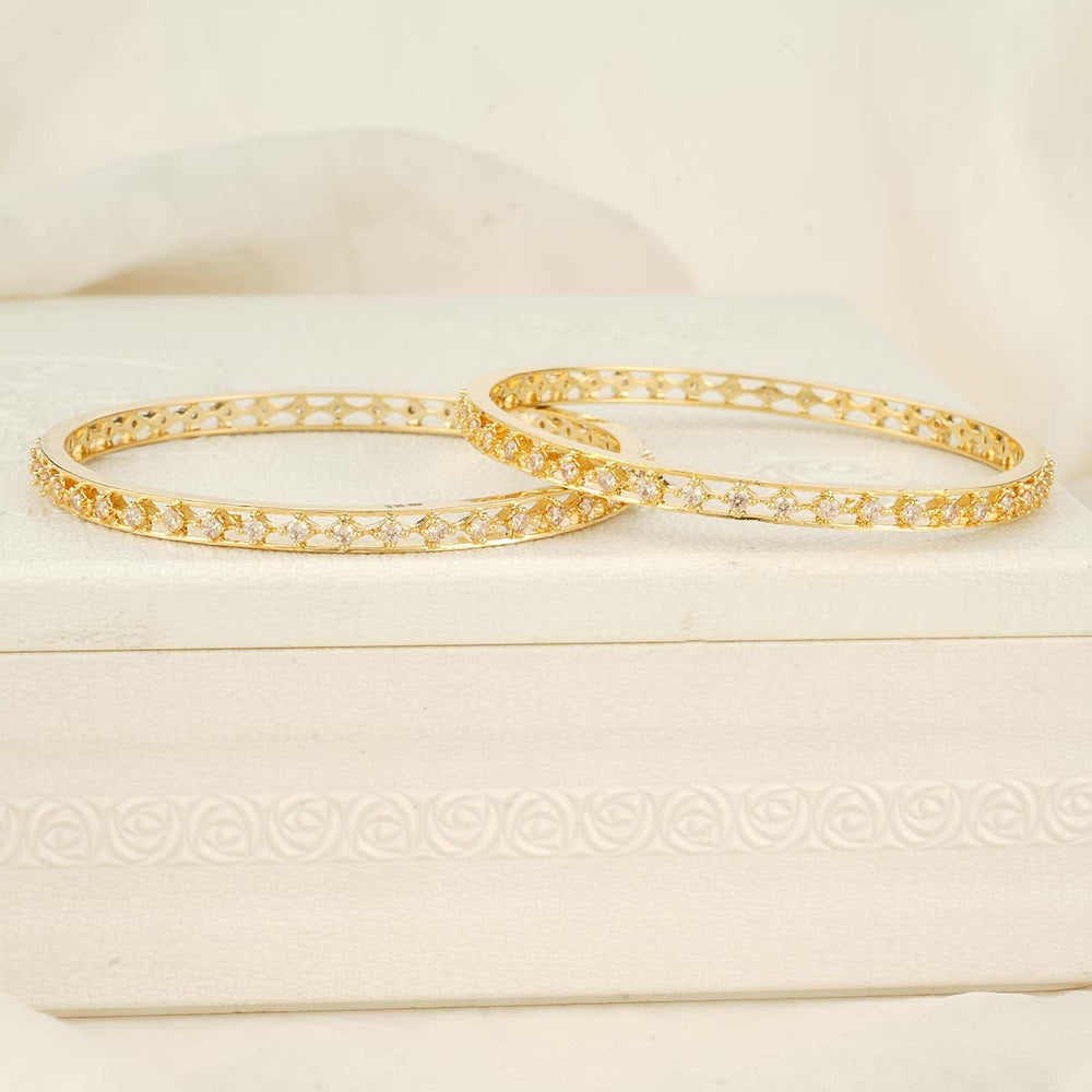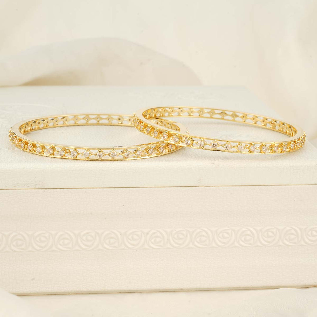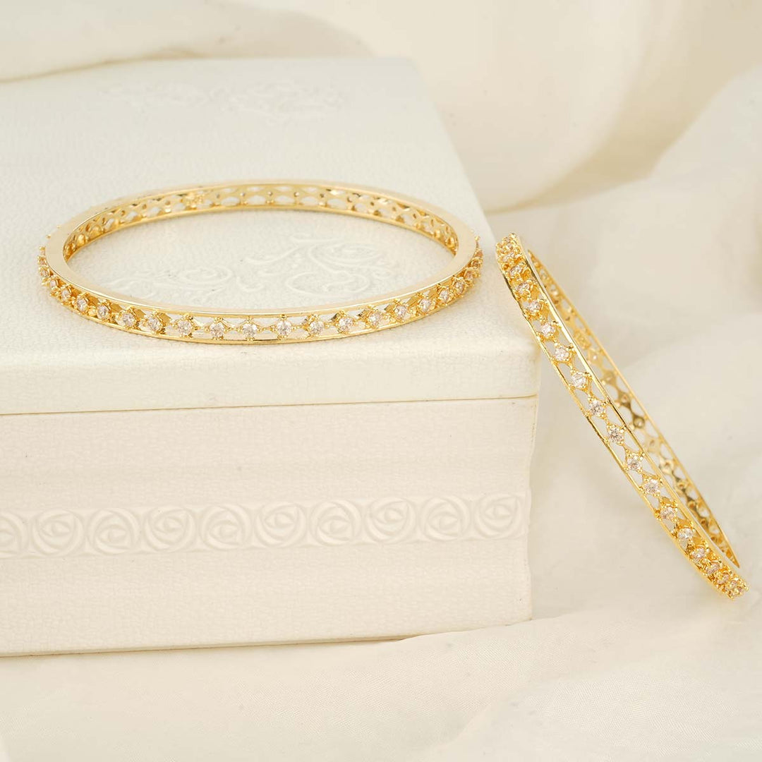 This 92.5 Silver, 24 kt gold-plated stylish Bangles is studded with semi-precious stones to make a stunning statement. Perfect for both formal and casual occasions.