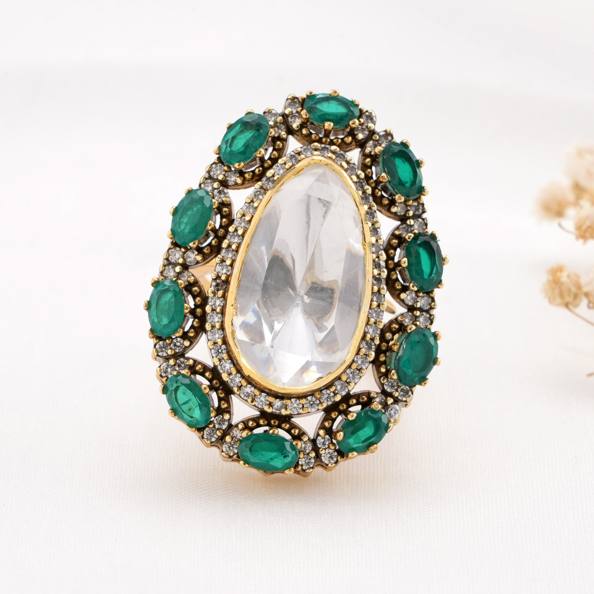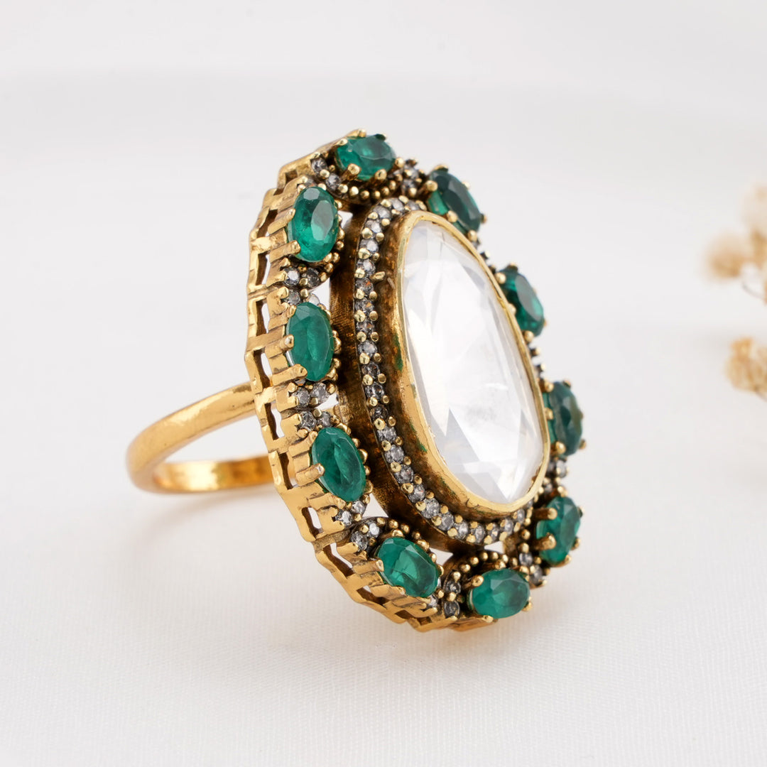 Crafted from a blend of 92.5% silver and 24kt gold plating, these rings showcase shimmering Moissanite stones for a touch of elegance.