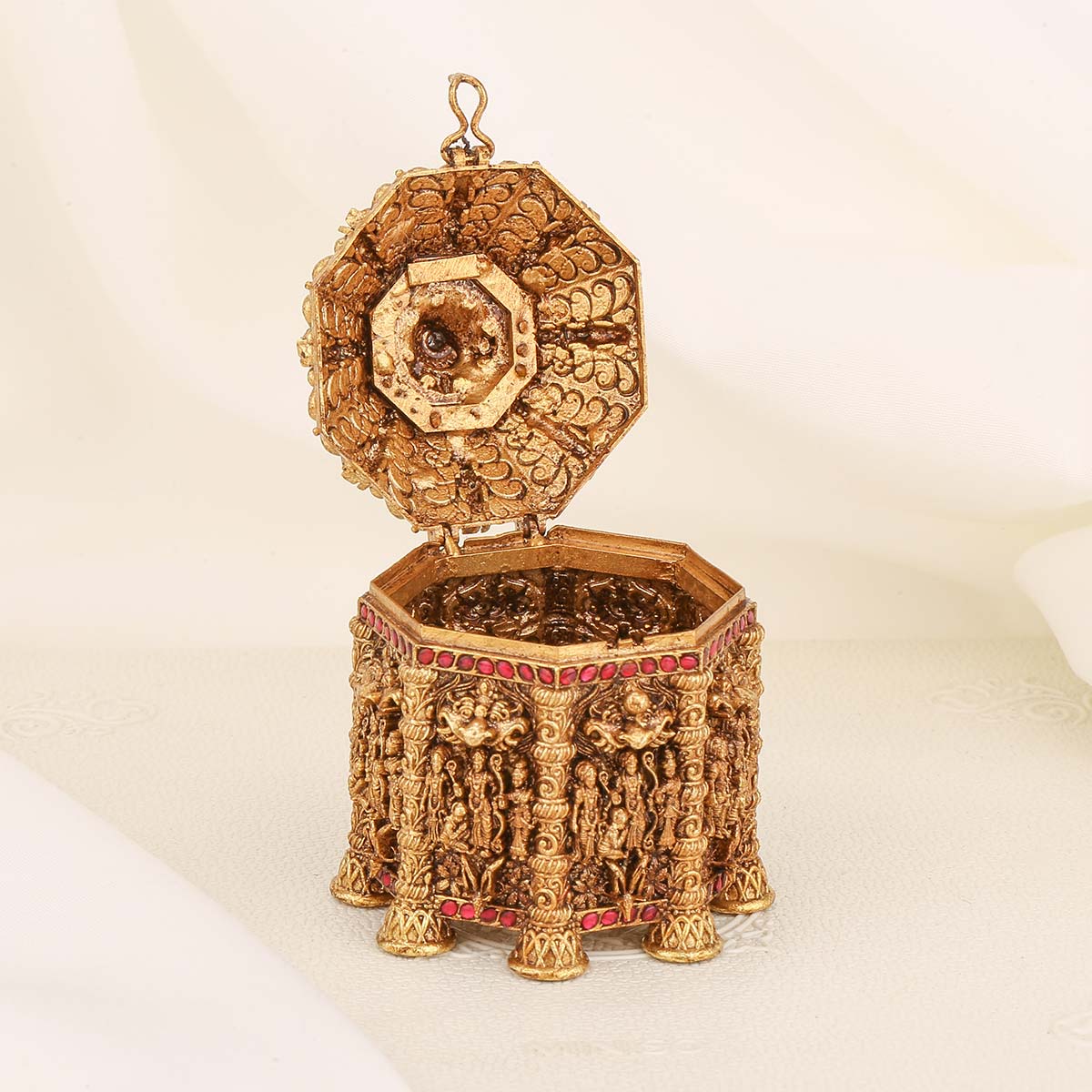 This beautiful Kum Kum Box is a timeless sophistication to any household. Crafted from 92.5 Silver, 24 kt Gold Plated the intricate design is inspired by traditional Indian art, featuring unique patterns and details. Perfect for any style of home!