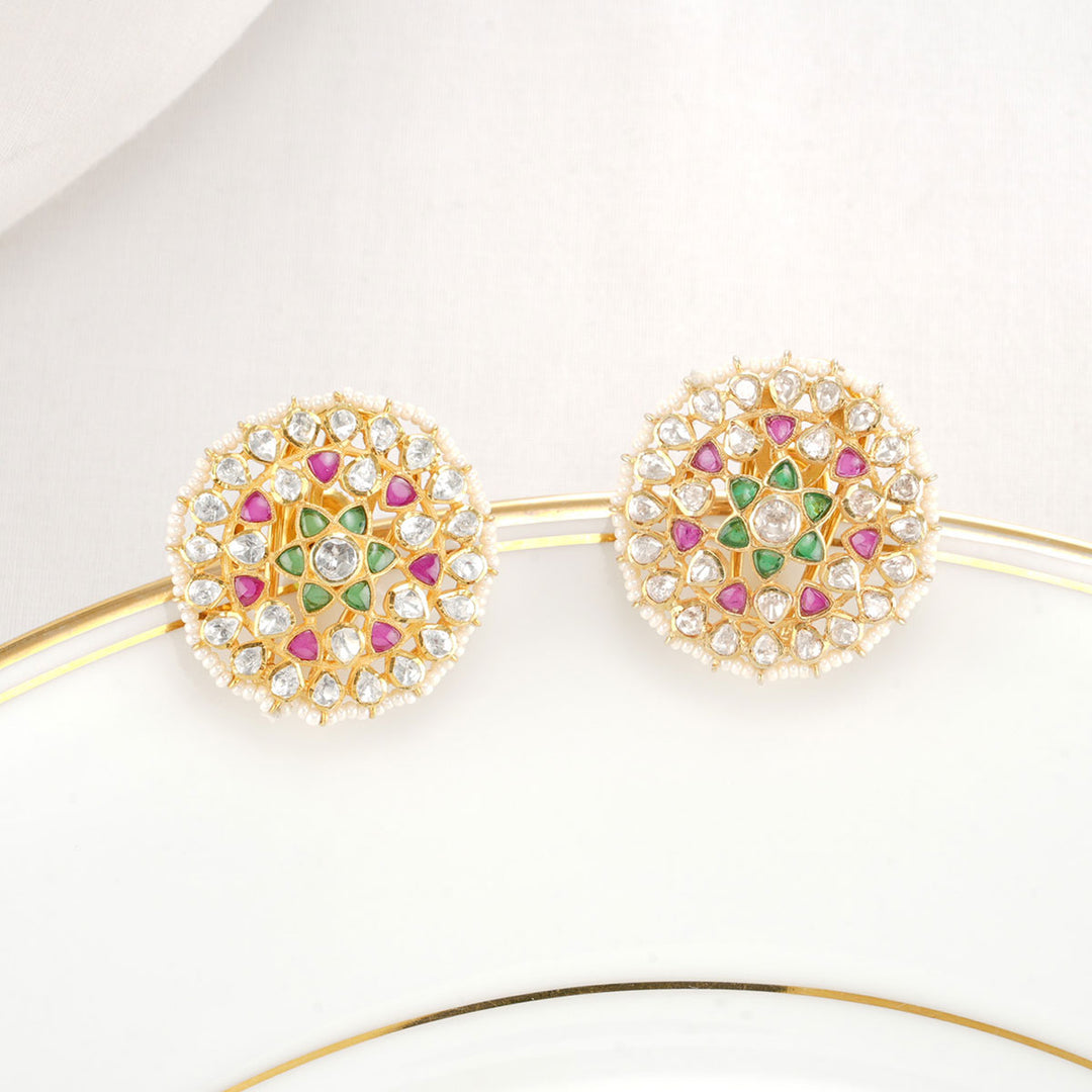 Fabricated from 92.5% sterling silver and 24-karat gold plating, these earrings are adorned with semi-precious stones.