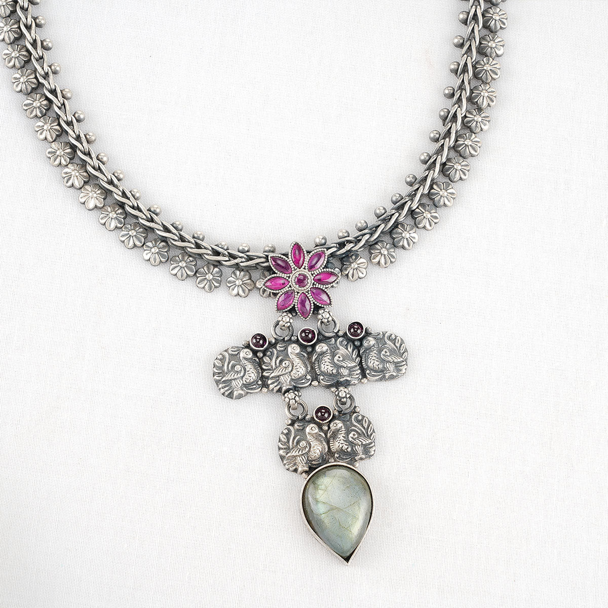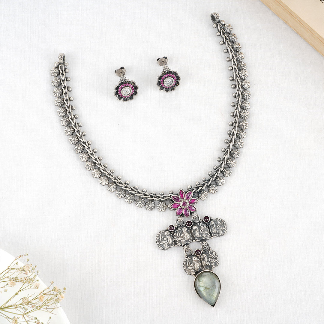 92.5 silver oxidized Necklace Set, Studded with Semi-Precious Stones.