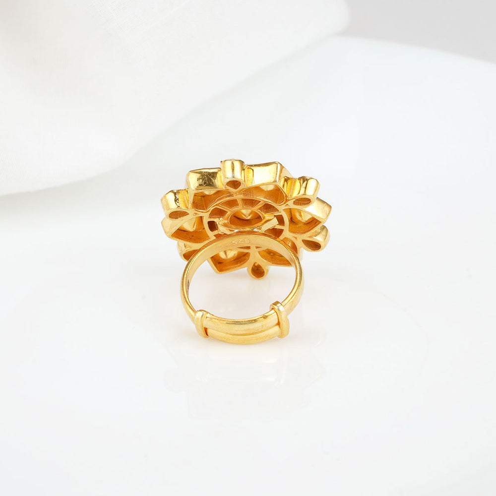 Crafted from a blend of 92.5% silver and 24kt gold plating, these adjustable rings showcase shimmering semi-precious stones for a touch of elegance.