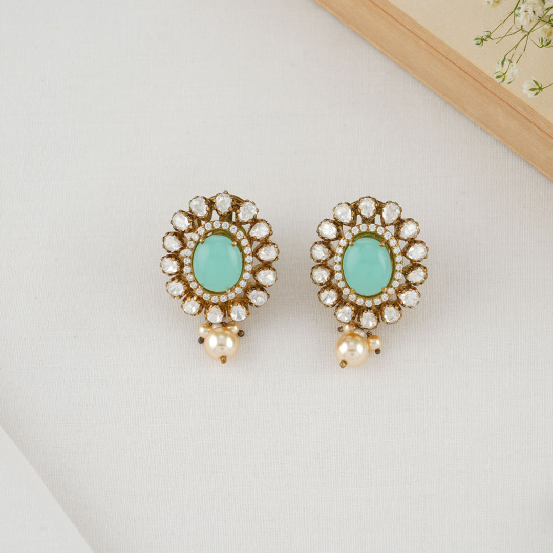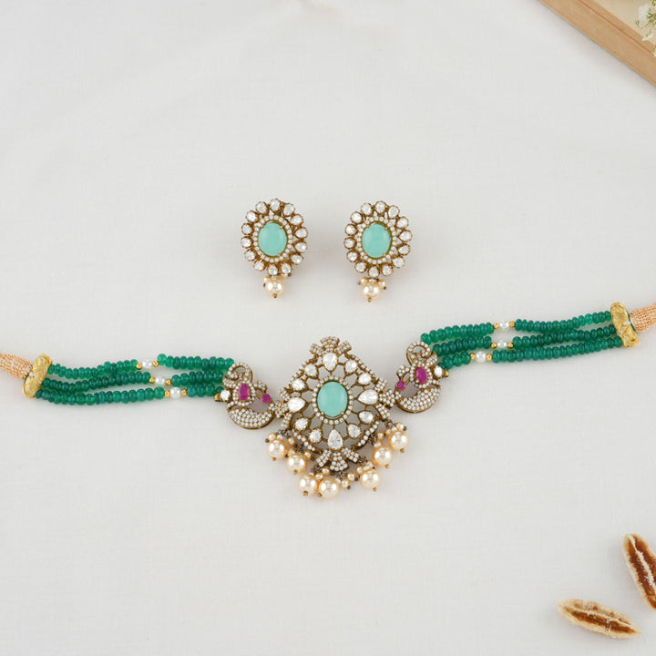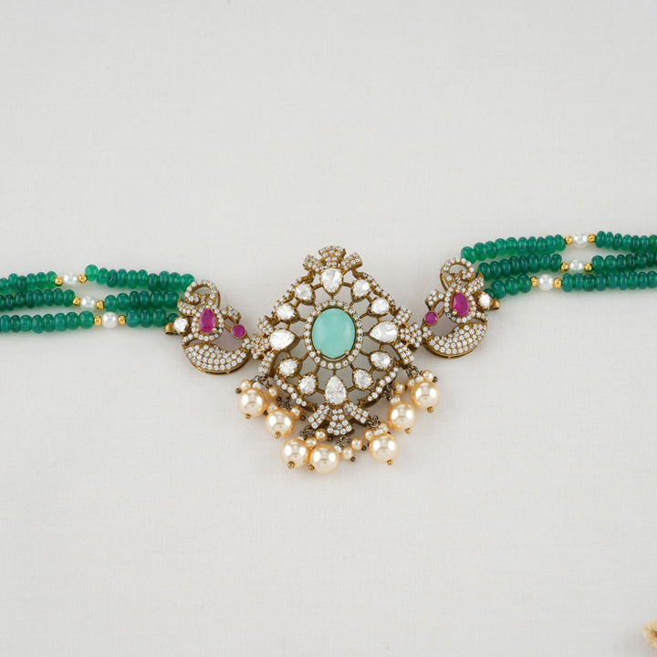 92.5 Silver, Victorian Necklace set studded with Gem Stones and Pearl Beads.