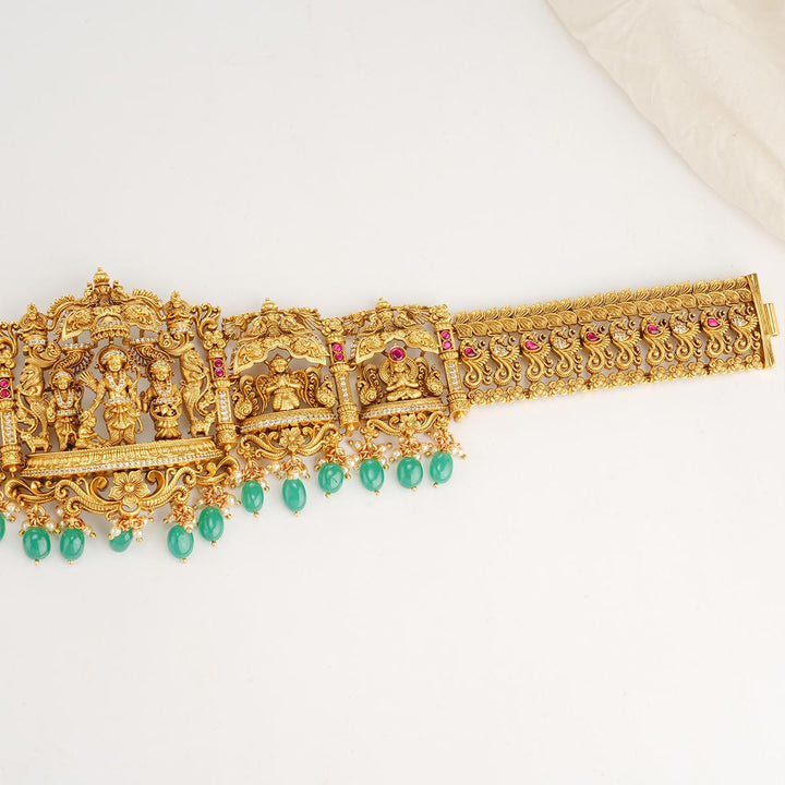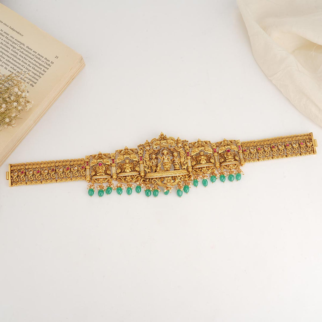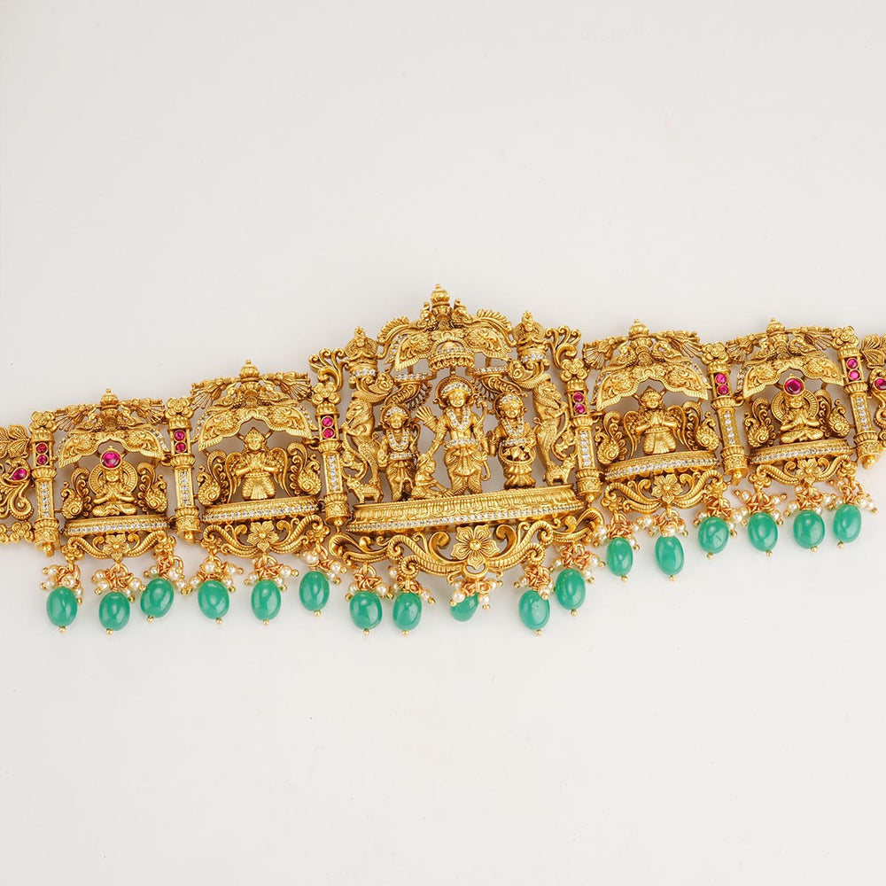 92.5 gold plated nagas oddiyanam/vadanam. this is studded with Semi-Precious stones that cast an auspicious blessing on the bride.