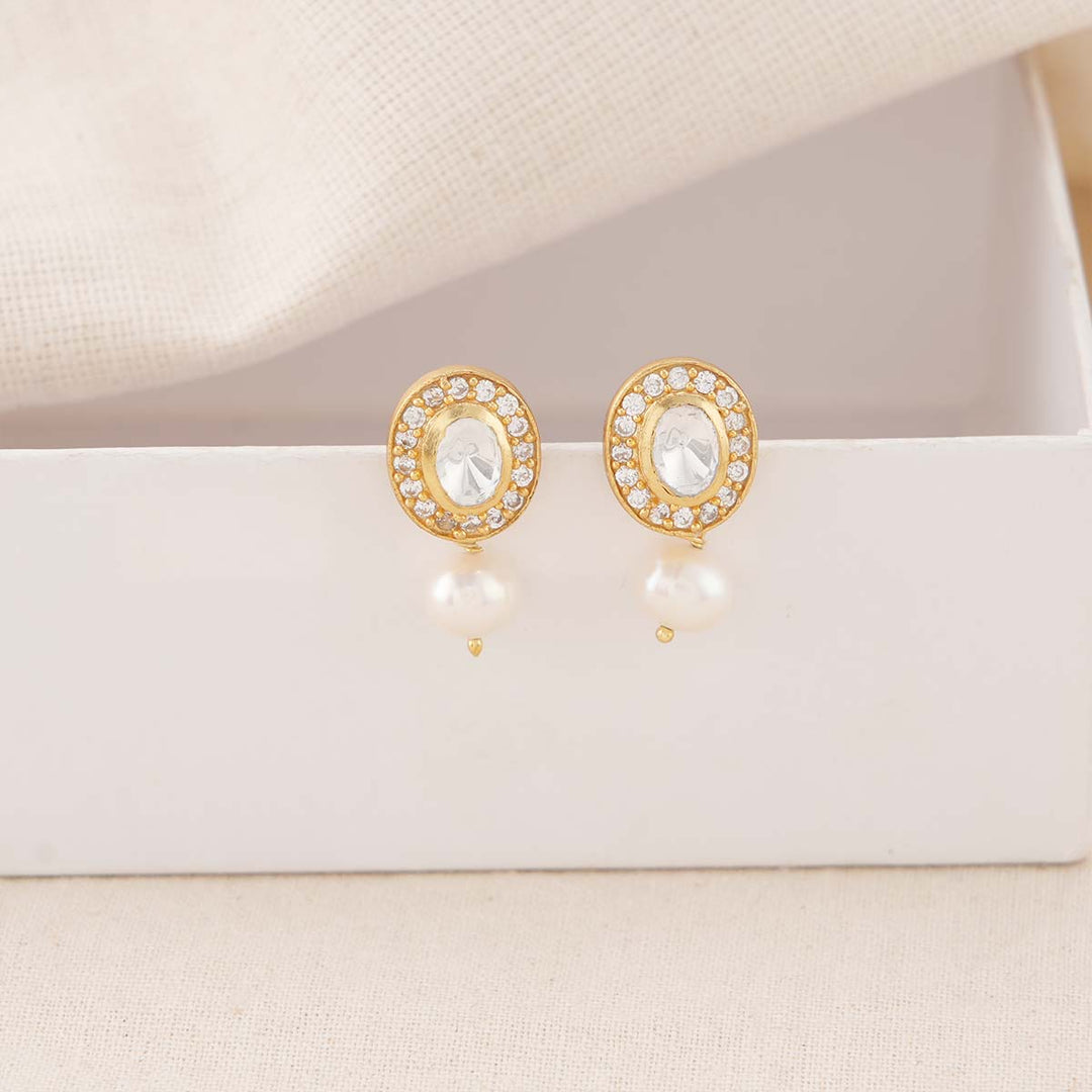 This 92.5 Silver, 24 kt gold-plated stylish Earring is studded with semi-precious stones to make a stunning statement. Perfect for both formal and casual occasions.