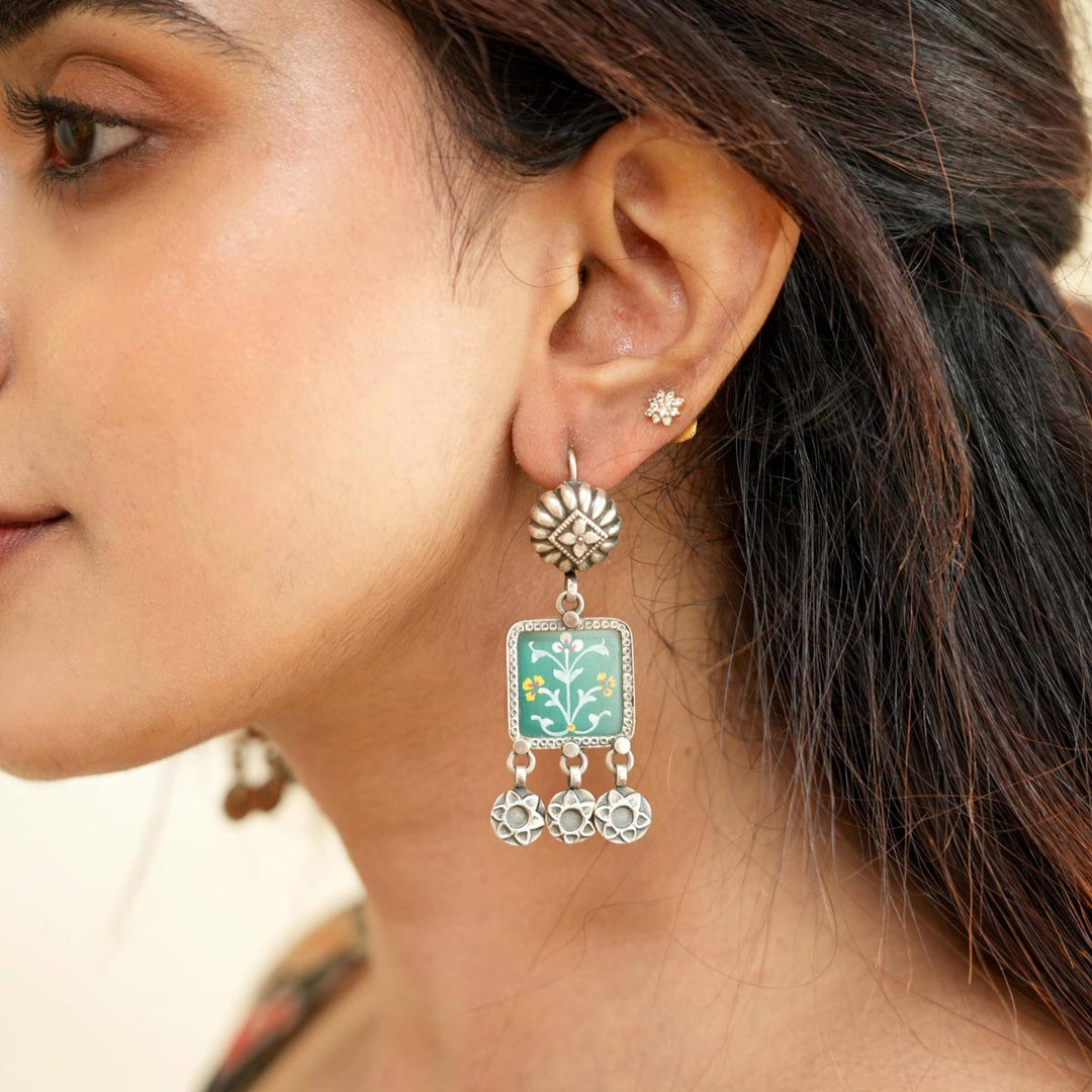 Wear them with a statement dress and handpainted Necklace set for all your special occasions.
