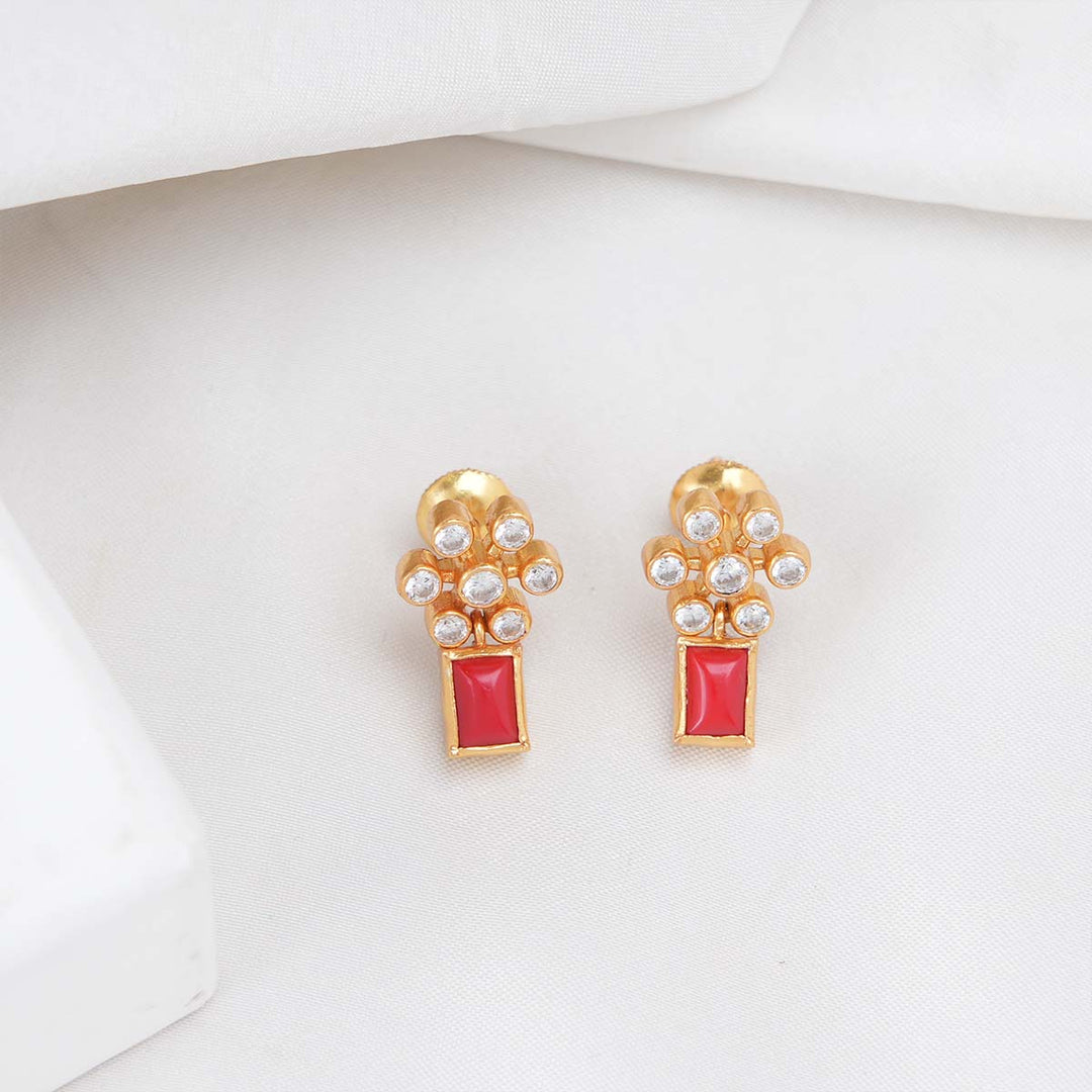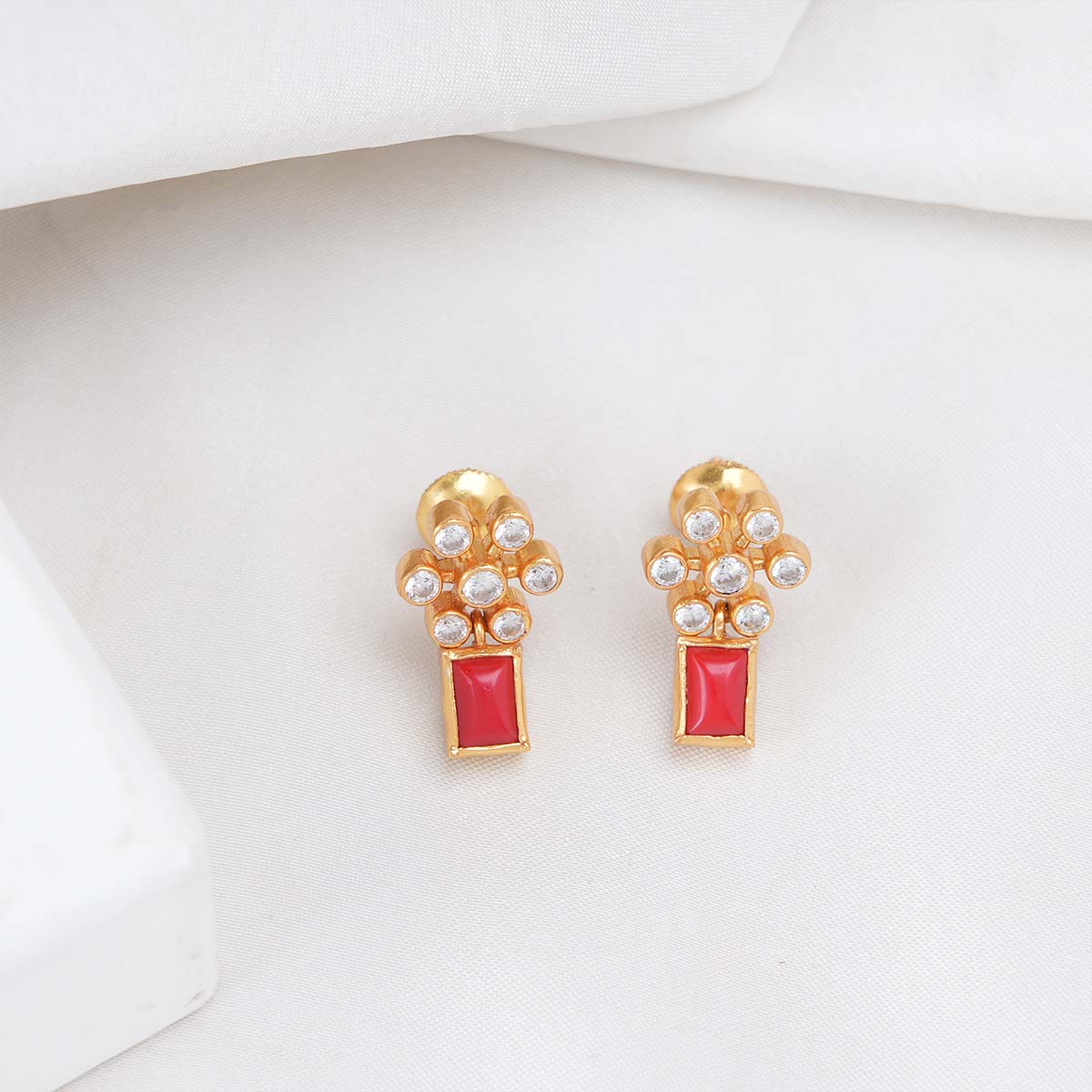 This 92.5 Silver, 24 kt gold-plated stylish Earring is studded with semi-precious stones to make a stunning statement. Perfect for both formal and casual occasions.