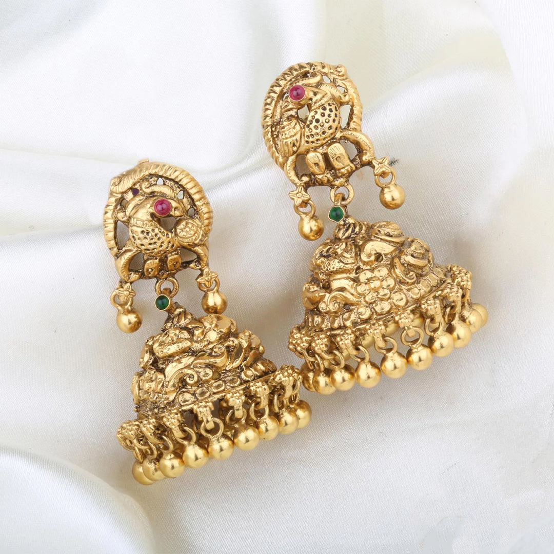 92.5 silver, 24kt gold plated Jhumkas studded with semi-precious stones.