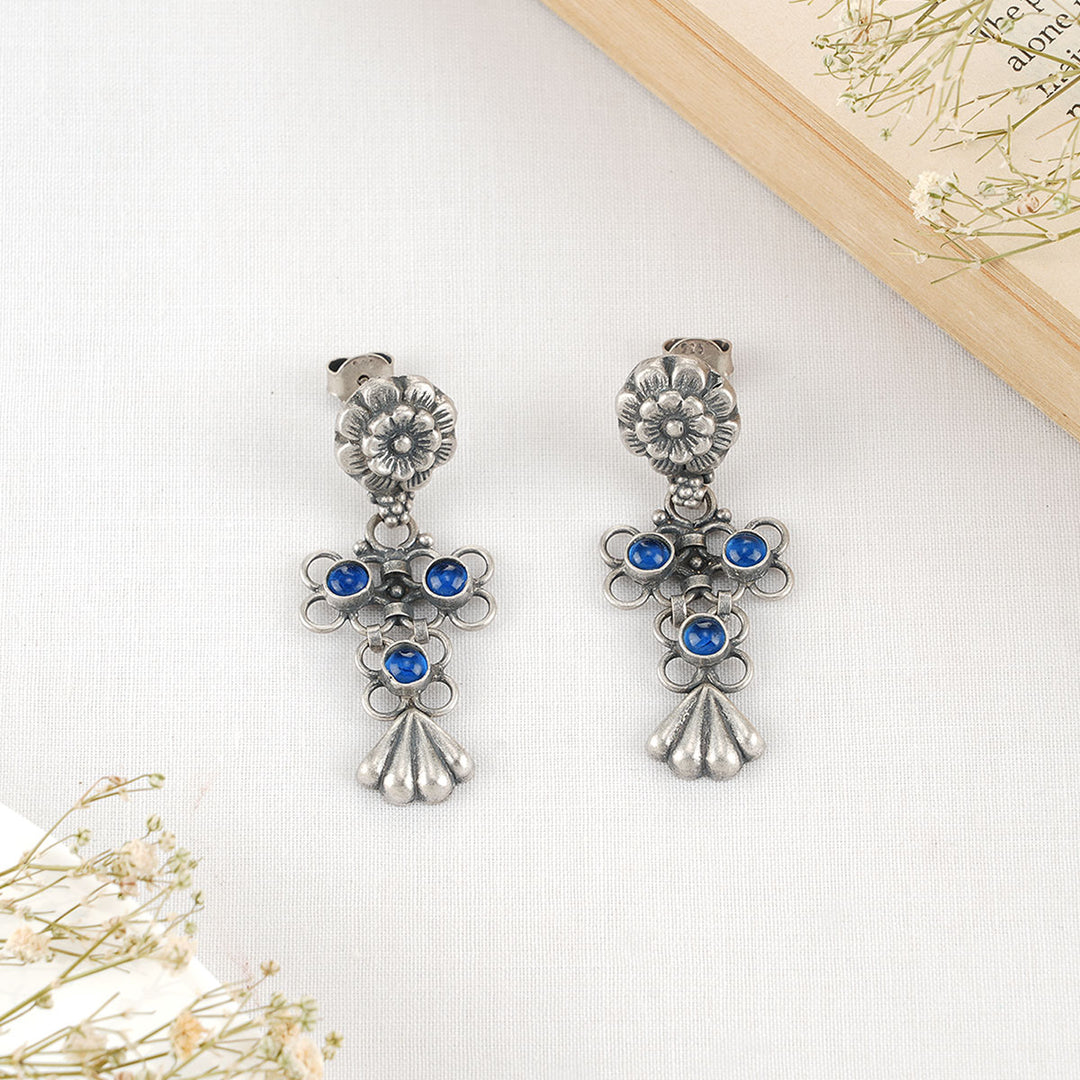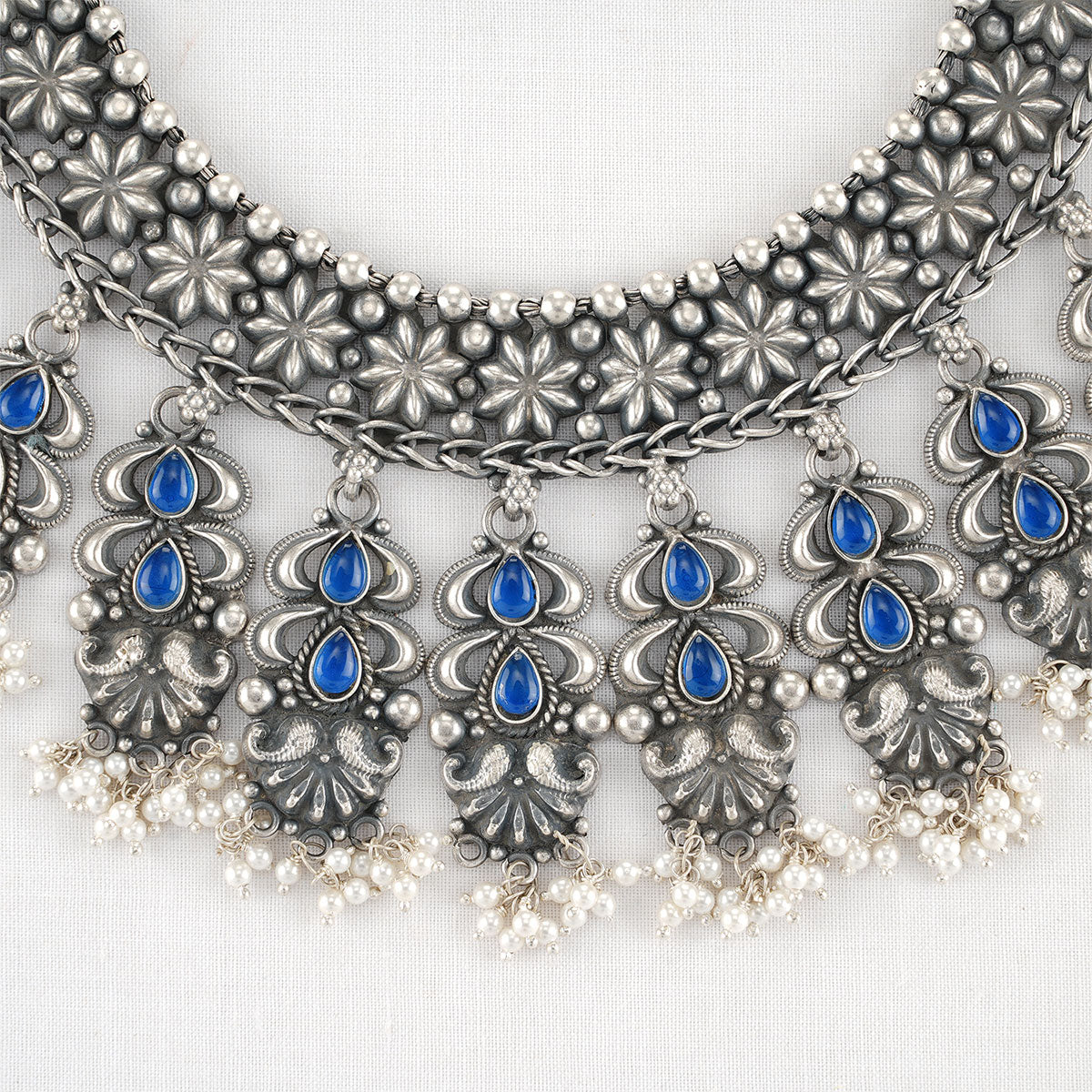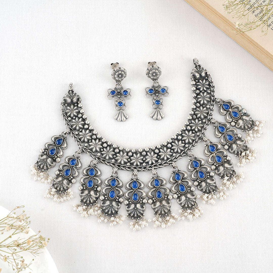 92.5 silver oxidized Necklace Set, Studded with Semi-Precious Stones.