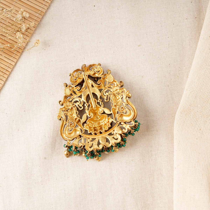 This Pendant is crafted with 92.5% sterling silver and plated with 24kt gold for a luxurious finish. Its unique design features semi-precious stones that add a touch of sophistication to any outfit. Its timeless design will bring a hint of luxury to your wardrobe for years to come.