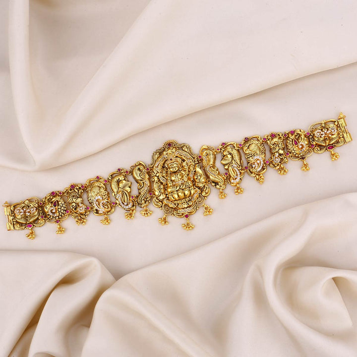 92.5 gold plated nagas oddiyanam/vadanam. this is studded with Semi Precious stones that casts an auspicious blessing on the bride.