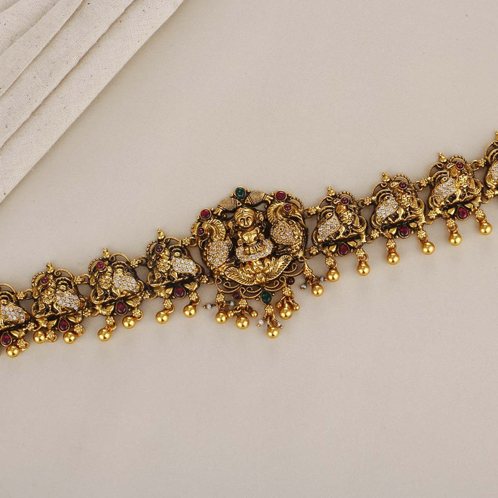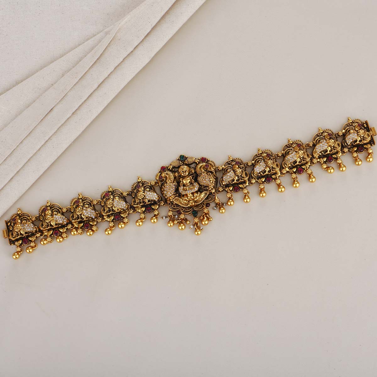 92.5 gold plated with goodness Lakshmi nagas oddiyanam/vadanam. this is studded with Semi Precious stones that casts an auspicious blessing on the bride.