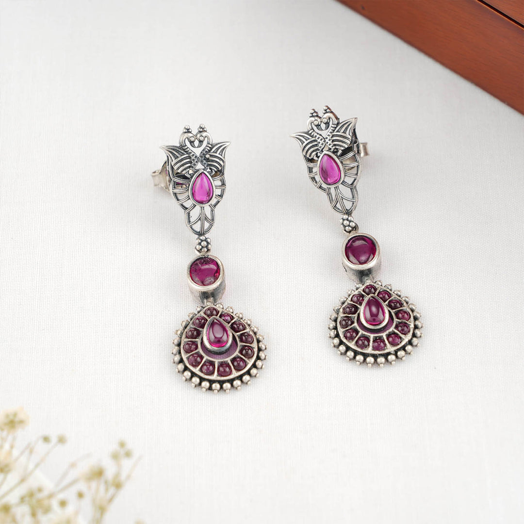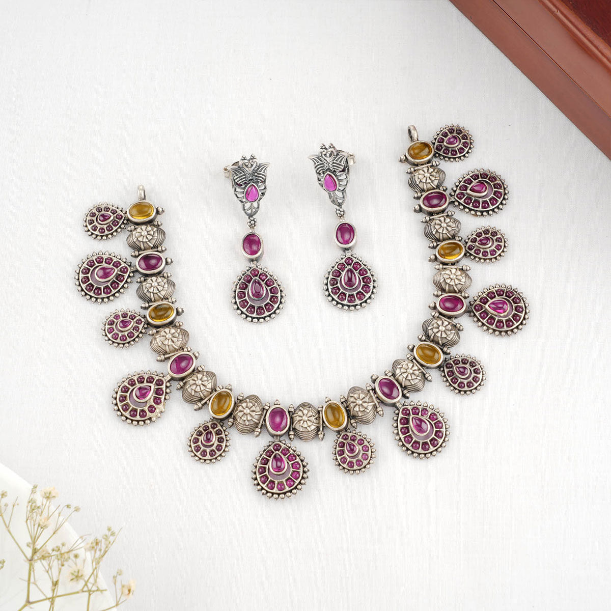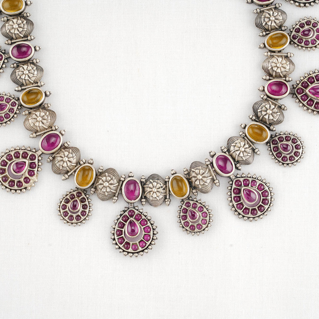 92.5 silver oxidized Necklace Set, Studded with Semi-Precious Stones.