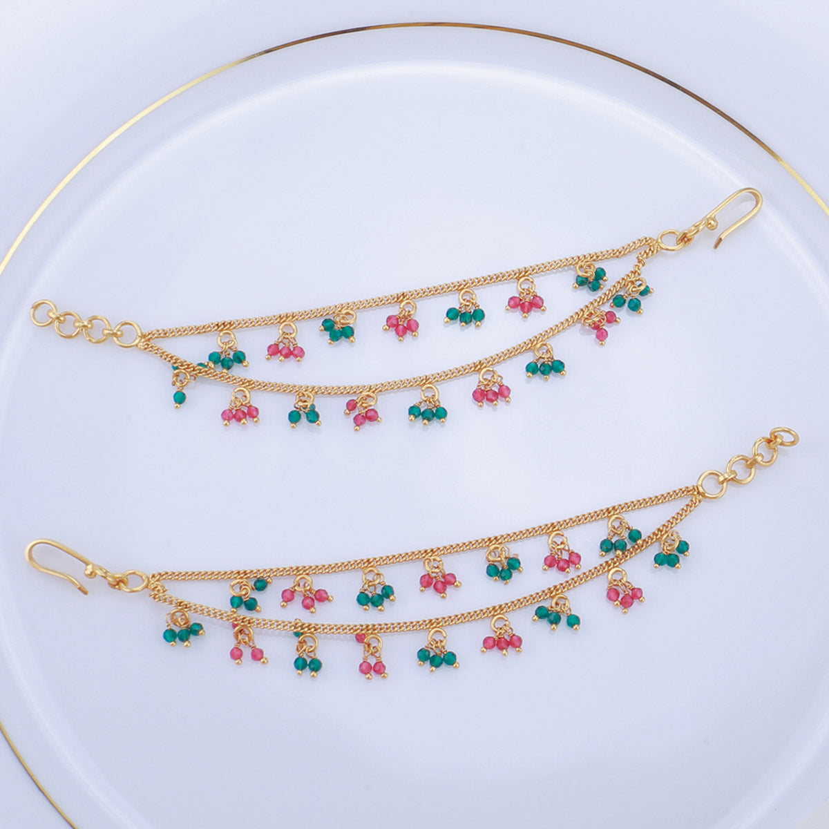 Featuring 92.5% pure silver and 24-karat gold plating, Hair Maatal is adorned with semi-precious stones for a striking look.