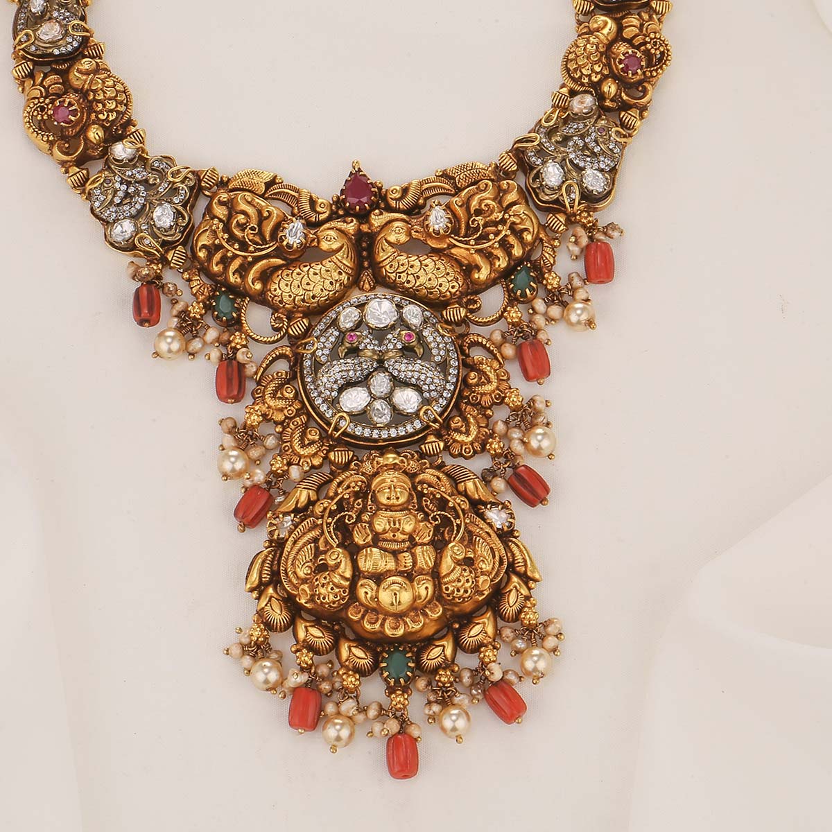 Crafted from 92.5 Silver and 24kt Gold Plated, this elegant Nagas Necklace features stunning semi-precious stones for a truly dazzling effect. Its unique design and exquisite style will undoubtedly make a grand impression.