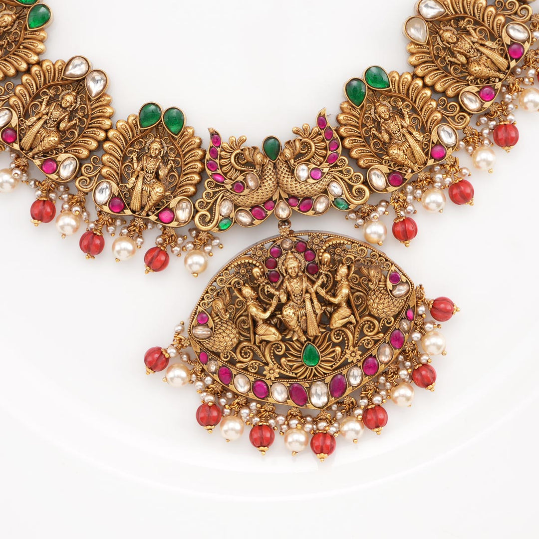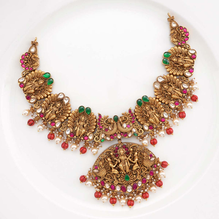 Elevate your style with this Majestic Look Nagas necklace. Crafted from 92.5 Silver and 24kt Gold Plated, this set boasts exquisite semi-precious stones for a dazzling effect.