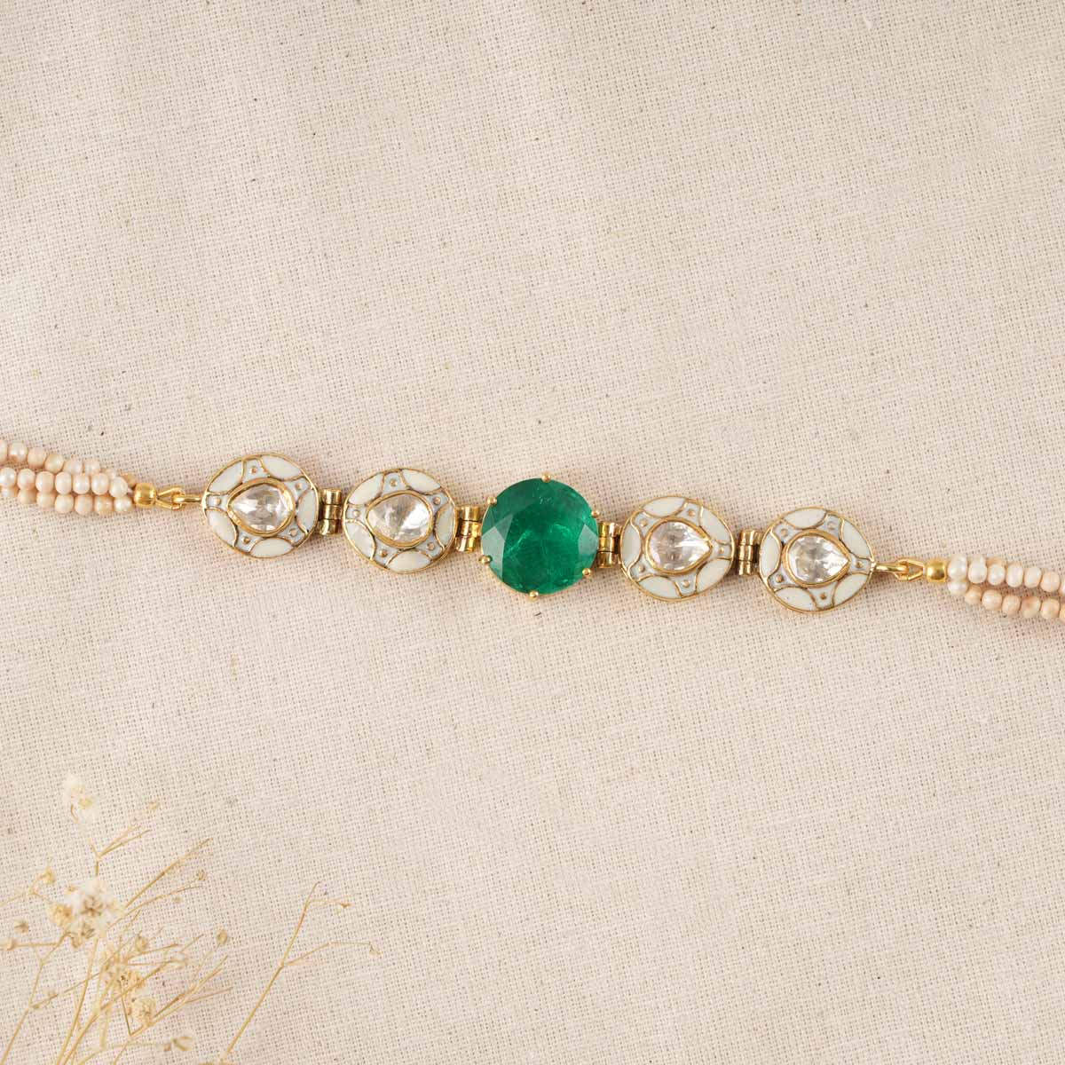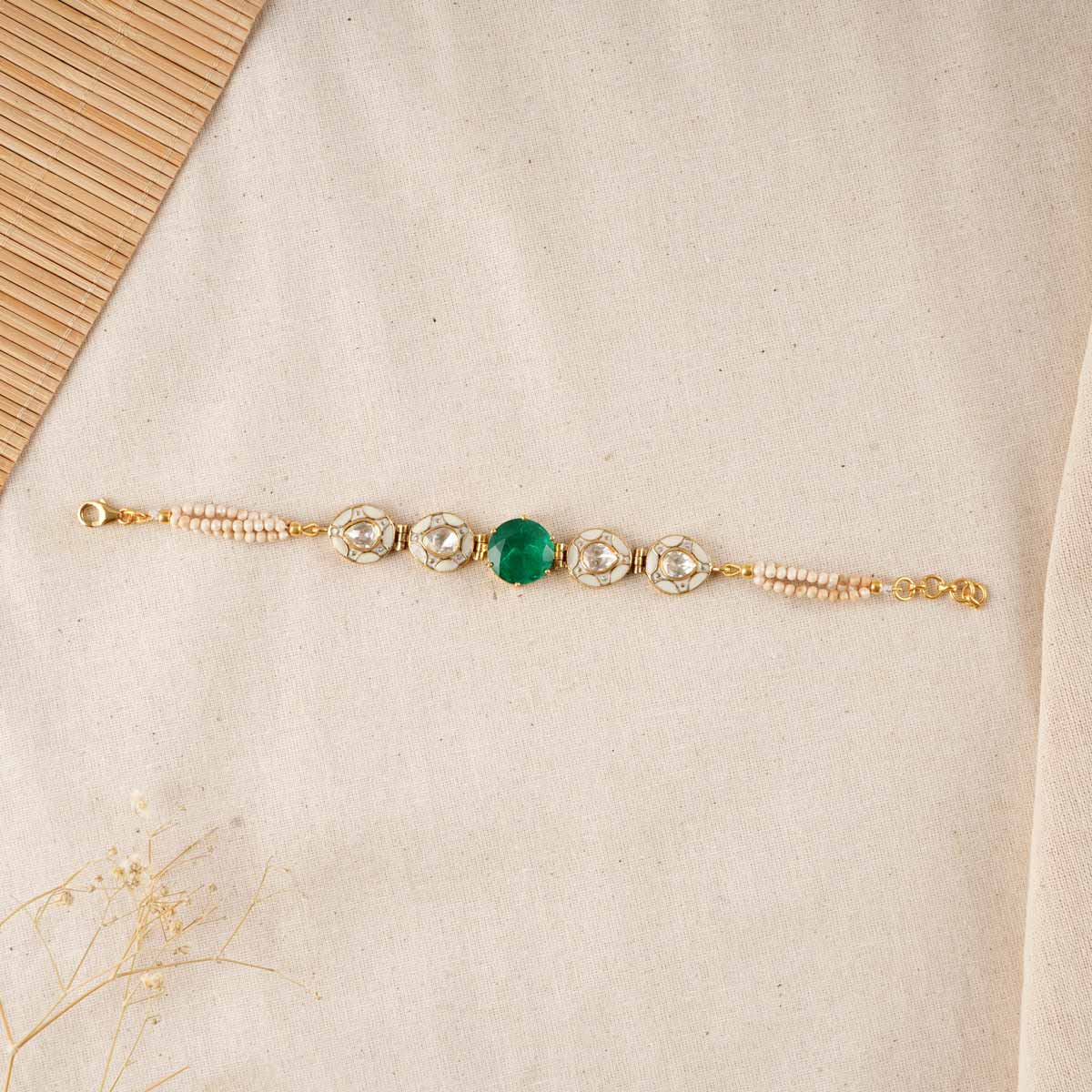 92.5 silver,24kt gold plated Kundan Bracelet studded with semi-precious stones.