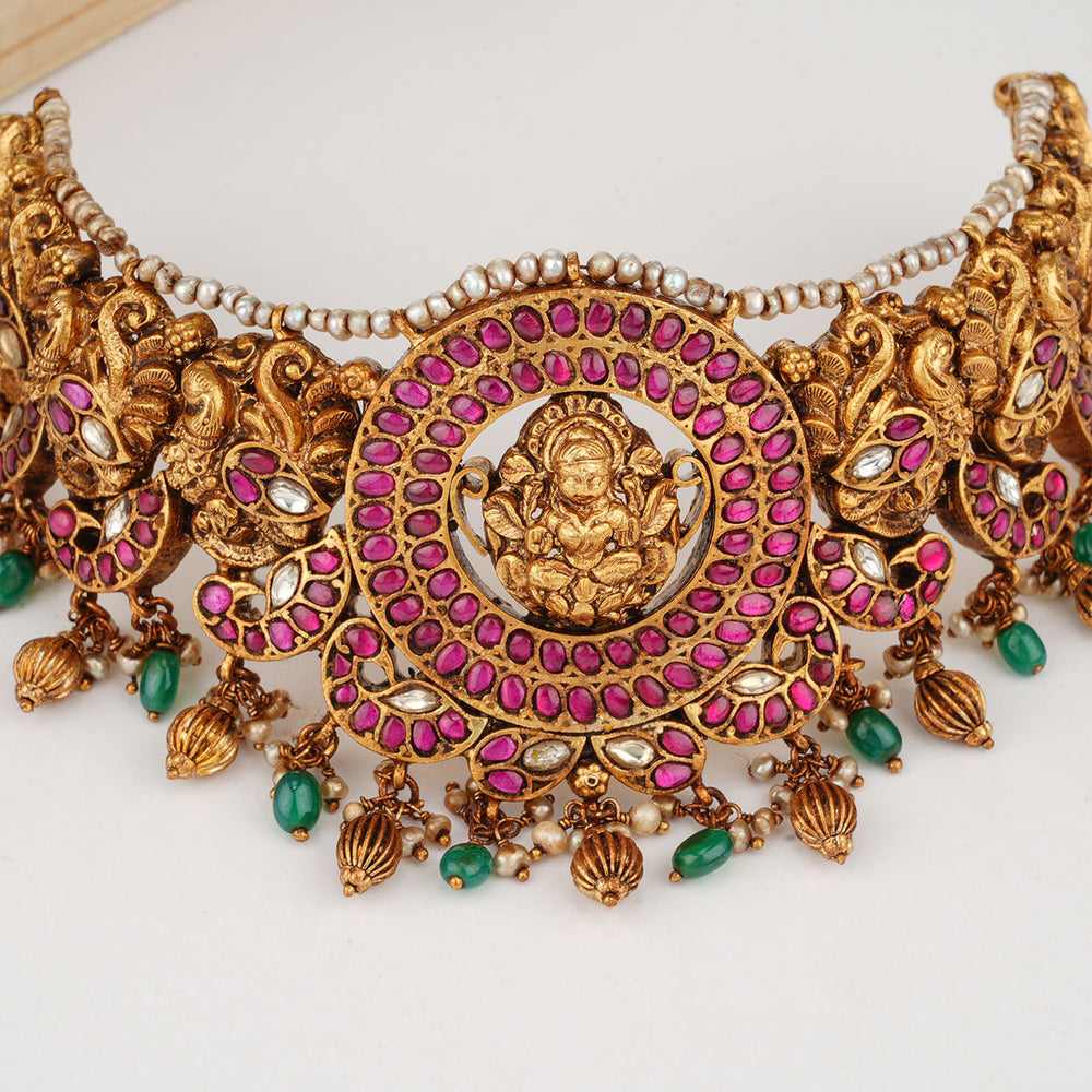 Handcrafted pure 92.5 sliver gold plated deep nagas jewellery. This is a fusion of deep nagas and Kundan's work. It takes about 100 days to make this one-of-a-kind masterpiece. We are proud to say that we are the first brand in India to launch this collection.