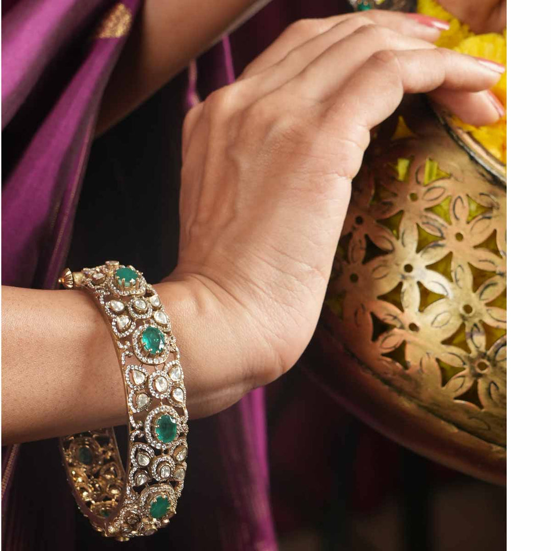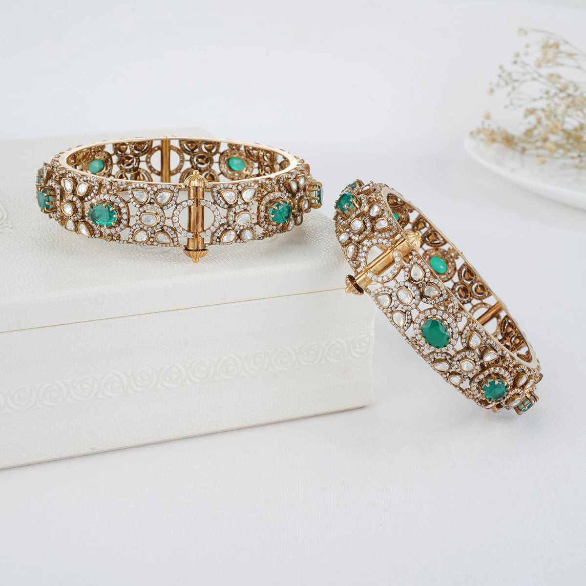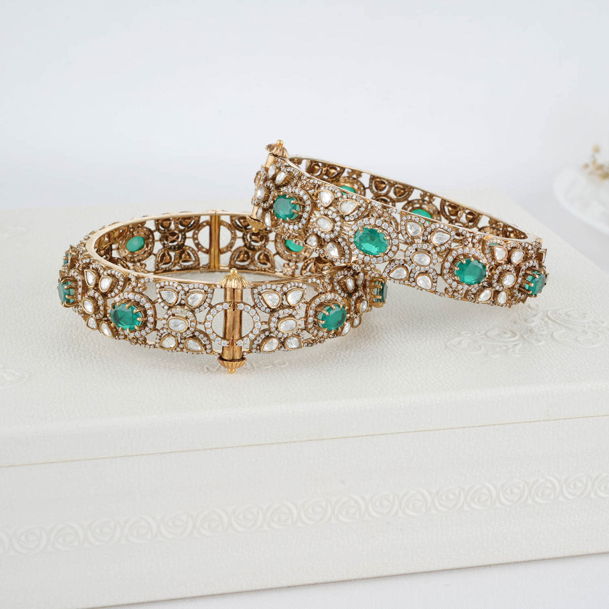 92.5 Silver, Victorian Bangles studded with Gem Stones.