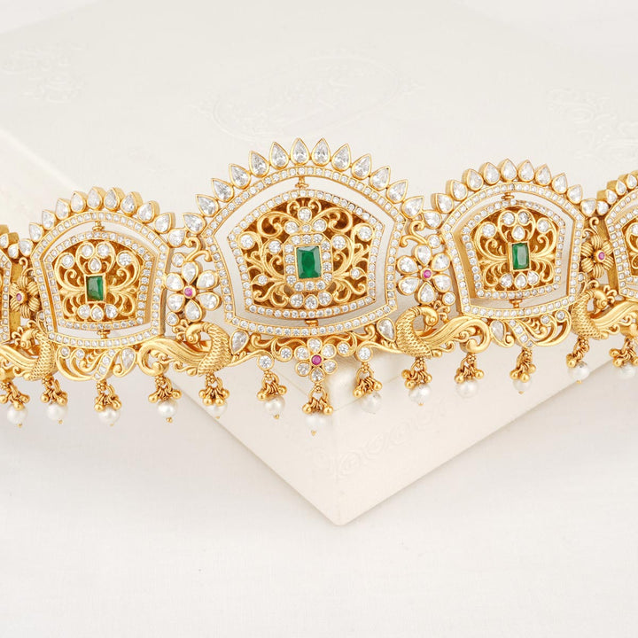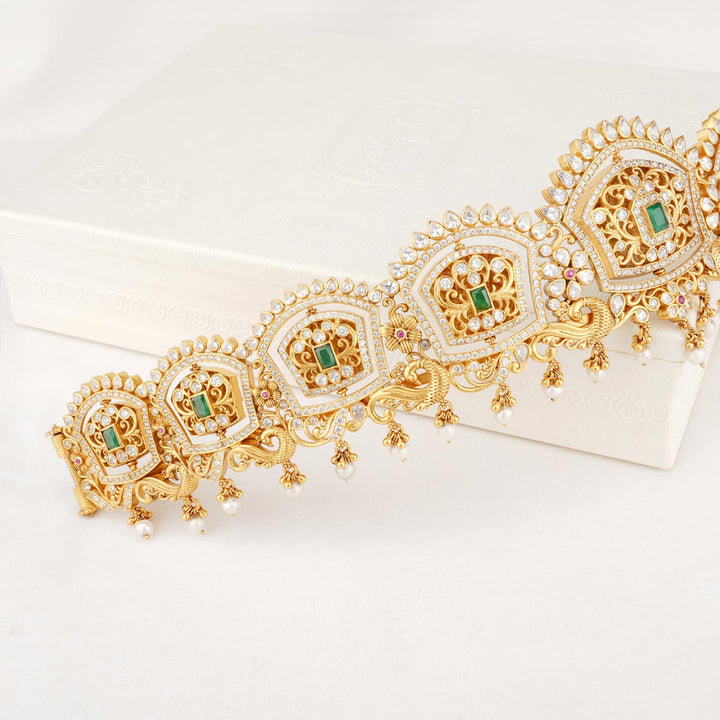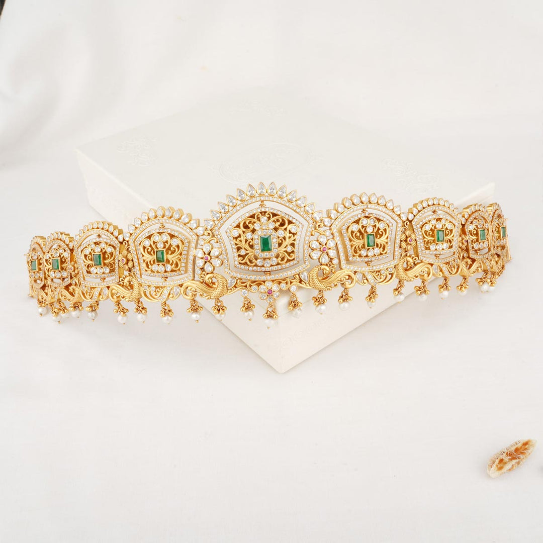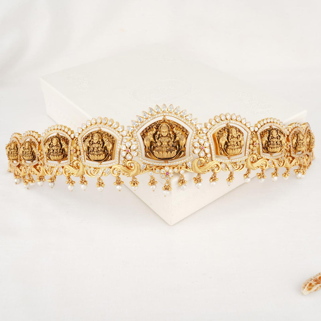 92.5 Silver, Gold Plated Oddiyanam/vadanam. customarily gifted to brides as an elegant feminine design, blessing the wearer with bountiful happiness.