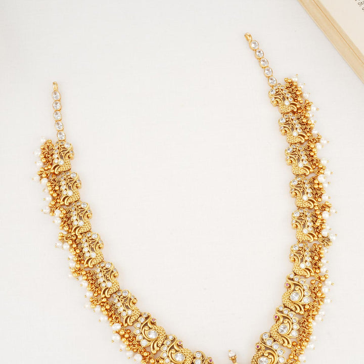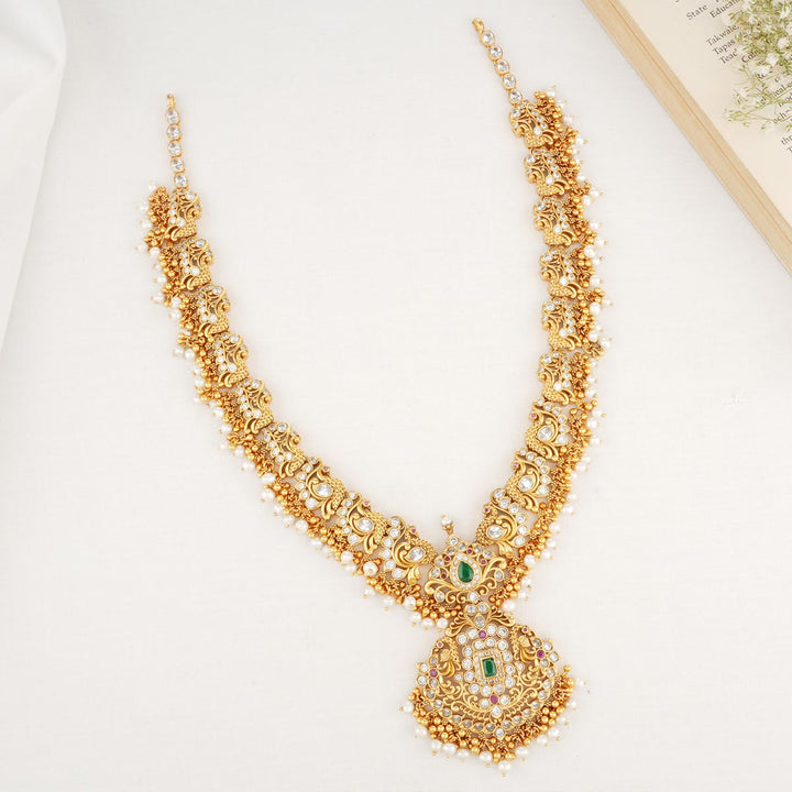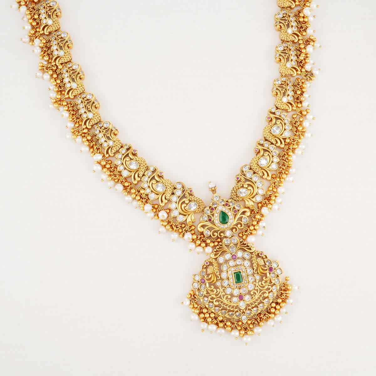 This necklace is made from 92.5 Sterling Silver and boasts 24-karat gold plating and semiprecious stones.